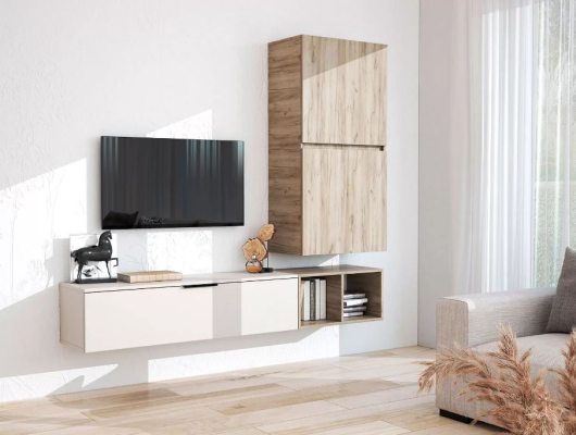Гостиная Бохо стильное решение для современного интерьера. Стенка Бохо навесная, сделает дизайн комнаты лёгким и воздушным.