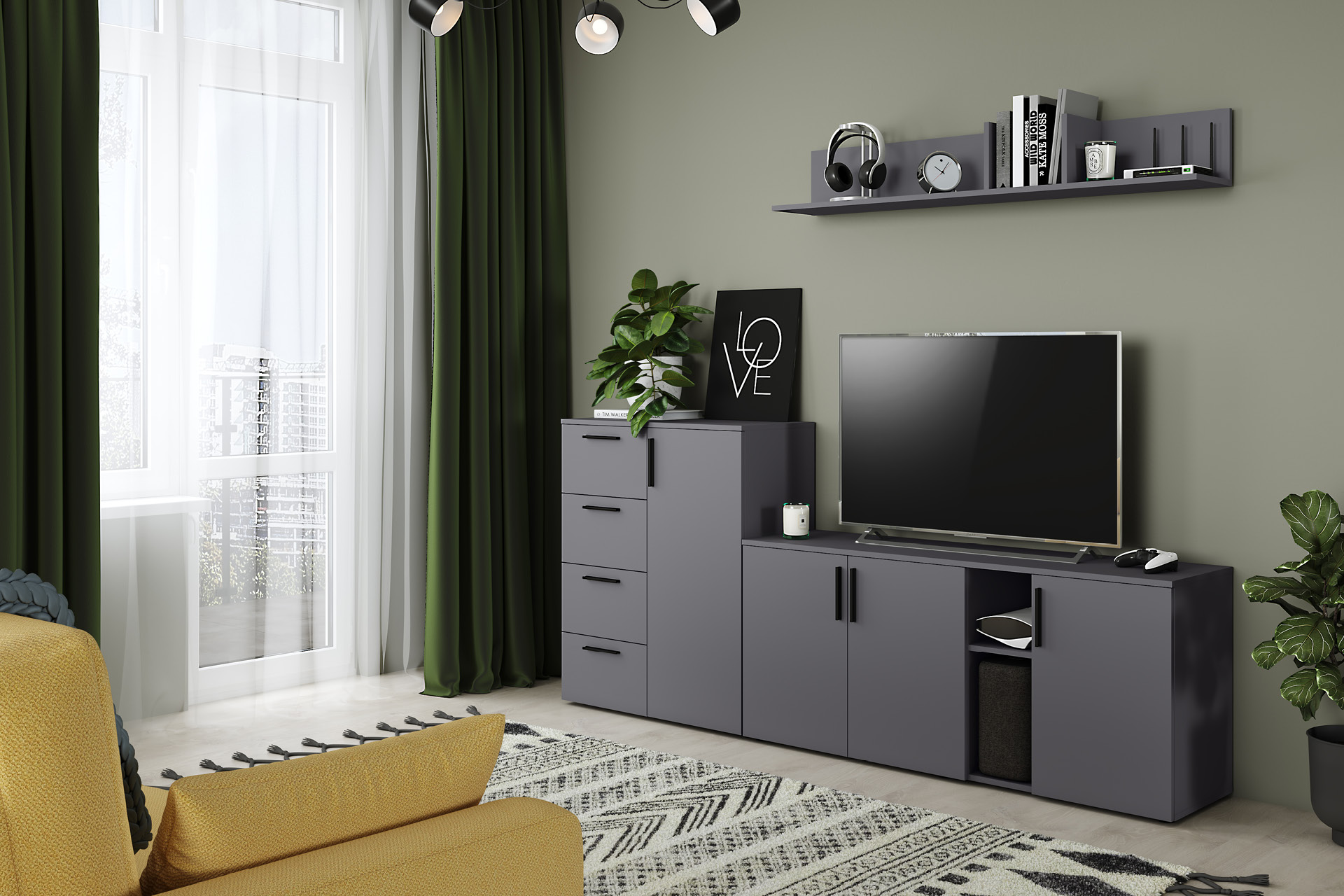 Гостиная Эйр со строгими линиями характеризуется минималистичным дизайном и функциональностью. Используются нейтральные цвета, такие как белый и серый. Эти оттенки создают спокойную атмосферу и подчеркивают строгие линии. Благодаря мебели Эйр вы сможете создать современную гостиную, которая будет сочетать в себе строгость и комфорт. -