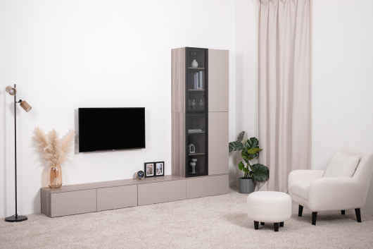 размещение ТВ-тумб как на полу, так и на стене -