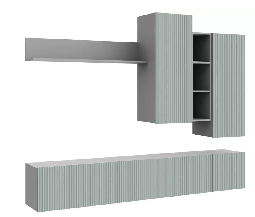 Стенка Сканди лёгкая и изящная. Фасады имеют стильный декор, что придаёт гостиной Сканди особое изящество. Стенка навесная, что облегчает уборку в гостиной.