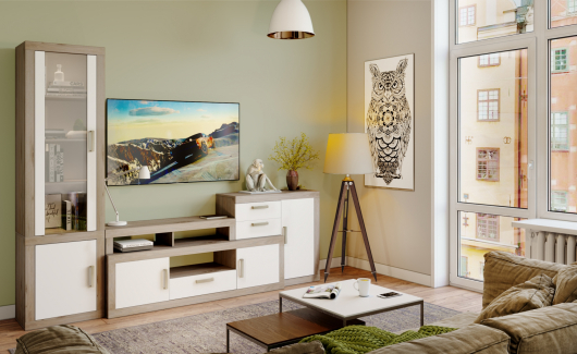 - консоль угловая Toivo ТОЙ Кон100 - Ш970 x Г380 x В900 мм.Гостиная Toivo (вариант 3) поможет со вкусом обустроить уютное помещение, где вы сможете проводить свое свободное время. Теперь вы сможете разместить телевизор на правильной высоте для более комфортного просмотра интересных фильмов и познавательных телепередач. Открытые ниши созданы для необходимой аппаратуры, а полки за стеклянной дверцей можно использовать для хранения абсолютно различных вещей и предметов.