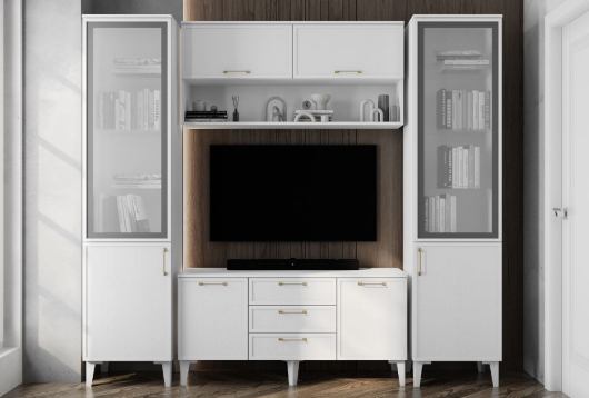 Гостиная Толедо модульная композиция для ценителей прекрасного. Витрина идеально разместит посуду и книги.