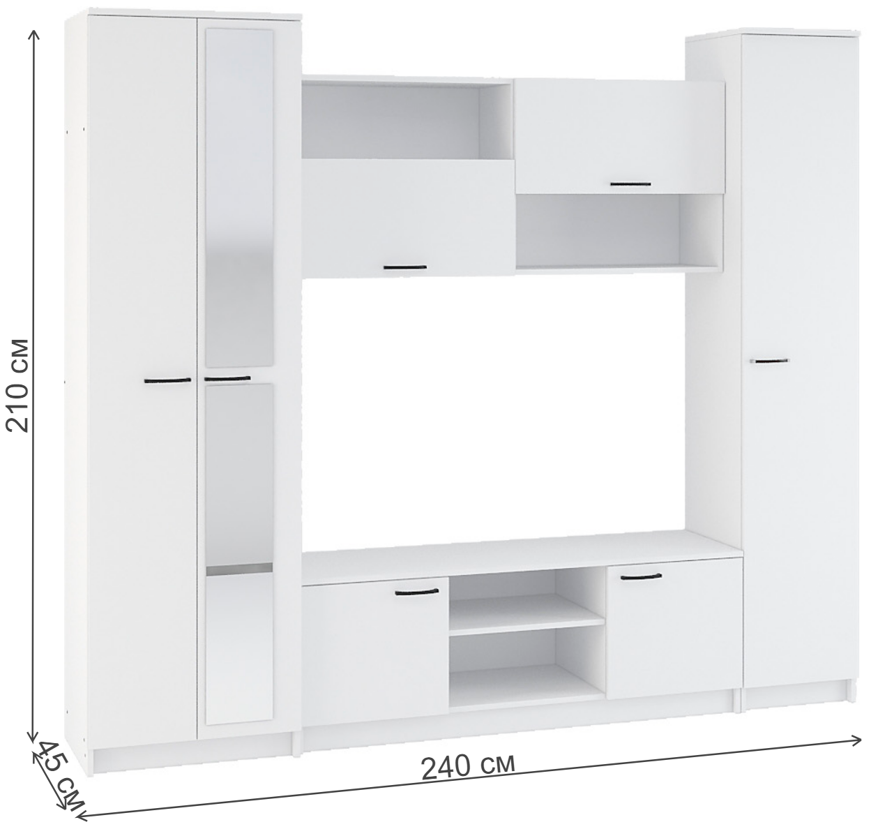 Ширина, мм 2400 Глубина, мм 450 Высота, мм 2100 ?МатериалМатериал изготовленияЛДСП Производитель Вариантов исполнения 1 -