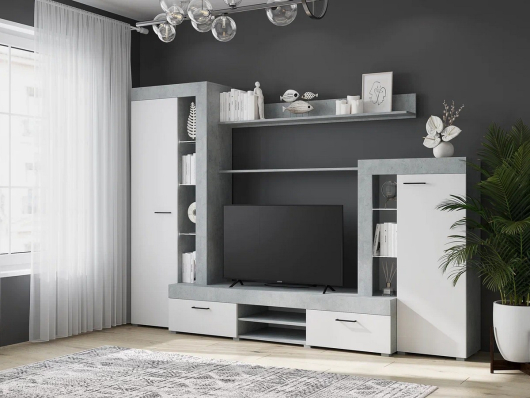 Стенка Дельта изготовлена в современном стиле. Стенка предлагается в готовом варианте для просторных и небольших помещений.