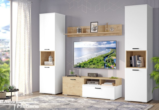 Стильная и современная гостиная Джаз станет украшением вашего интерьера. Для любителей комфорта и уюта подойдёт тёплое сочетание древесных оттенков с белый цветом, а для любителей Лофта и холодных, строгих тонов подойдёт тёмный серый цвет в сочетании с белым. Стенка Джаз 1 очень функциональная.