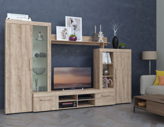 Стенка Мираж-1 – это стильный и функциональный элемент интерьера, который может стать центральным акцентом в гостиной. Четкие линии, простые формы, отсутствие излишнего декора. -