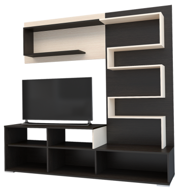 Современная и необычайно компактная стенка Интеро прекрасно впишется в интерьер вашей гостиной, а также поможет создать уютную атмосферу. Теперь у вас появится место для правильного размещения телевизора и для красивой расстановки интересных книг, роскошной посуды, оригинальных сувениров и для множества фоторамок с фотографиями любимой семьи. Стенка Интеро привлекает внимание нестандартными полками, современным сочетанием цветов, интересной компоновкой и необходимым функционалом в стиле минимализм.
