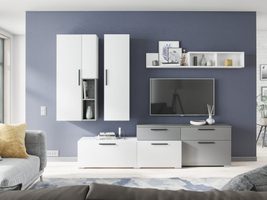 - тумба ТВ Альберо - Ш2100 х Г417 х В570 мм.Гостиная Альберо (вариант 2) поможет со вкусом обустроить уютную и комфортную комнату. На открытых полочках будут гармонично смотреться семейные фотографии, интересные книги и оригинальные предметы декора. За распашными дверцами найдется место для хранения посуды, семейных фотоальбомов, а также одежды и других вещей. Тумба ТВ поможет разместить телевизор для более комфортного просмотра новостей, сериалов и различных телепередач. Выдвижные ящики и полки, скрытые за распашными дверцами, пригодятся для хранения различных вещей и предметов.