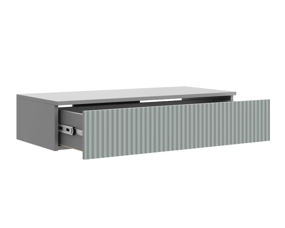 Подвесная тумба Сканди Серый шифер/Грин грей софт отличное решение для современной гостиной. Благодаря тому что тумба навесная, позволит с лёгкостью совершать уборку. -