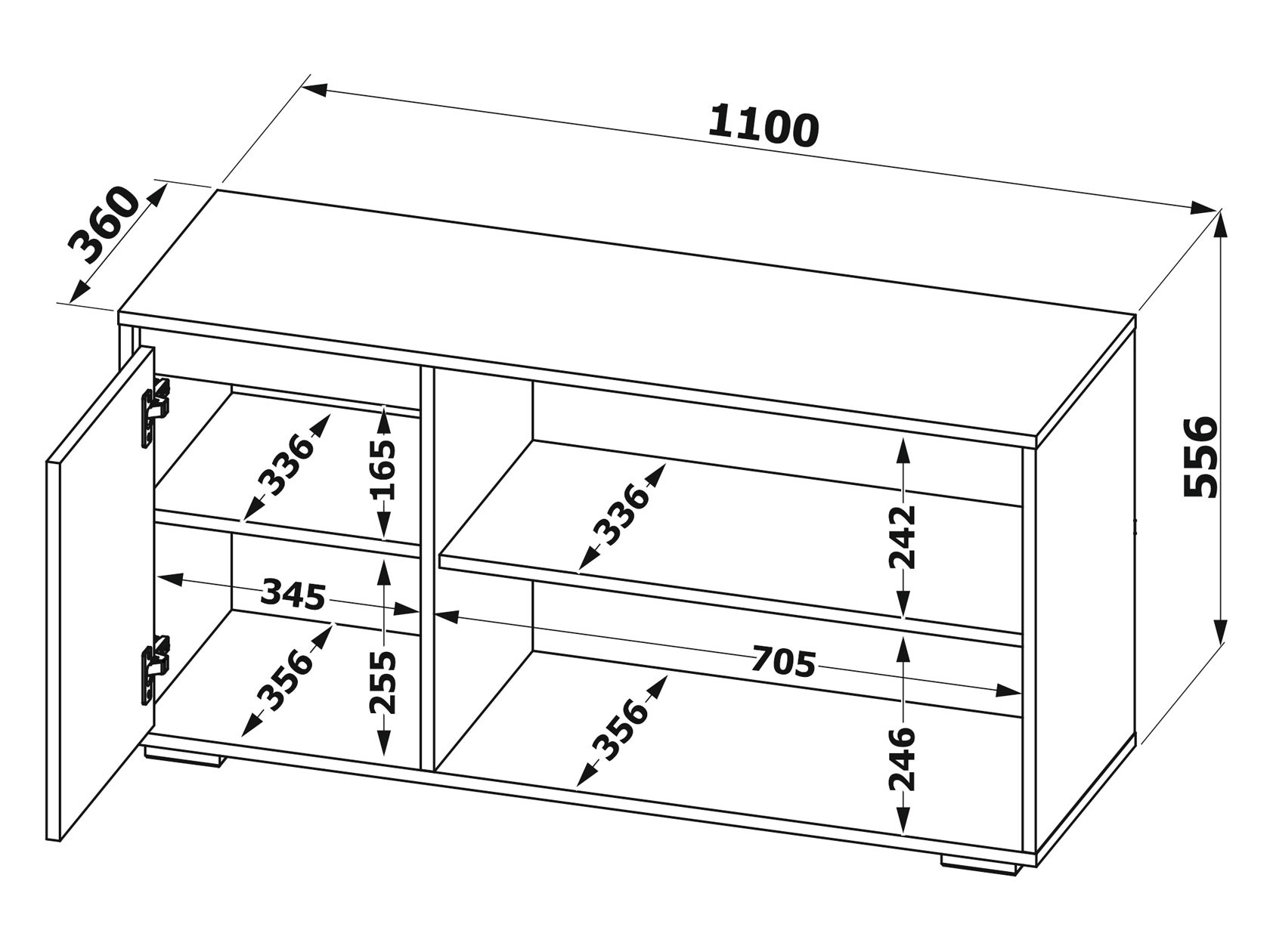Размеры: Ш1100 х Г356 х В556 мм