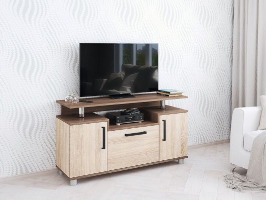 Тумба ТВ 033С гармонично впишется в любой интерьер современной и уютной гостиной. Изделие поможет разместить телевизор для правильной высоте для более комфортного просмотра новостей, телепередач и сериалов. Открытая ниша предназначена для необходимой аппаратуры. В двух достаточно вместительных выдвижных ящиках Вы сможете хранить разнообразные и нужные предметы. -