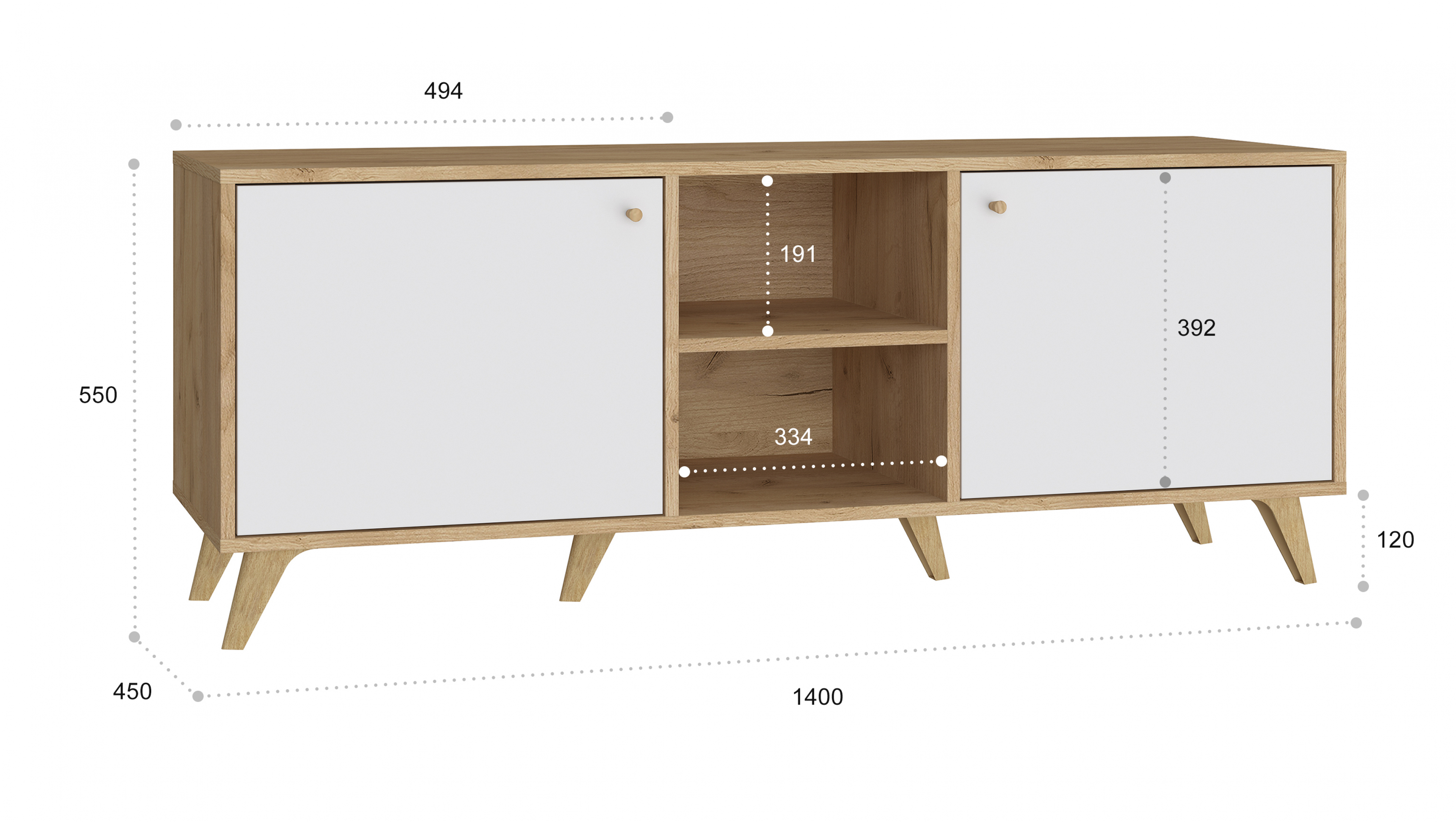 Тумба отлично вписывается в пространство стандартной гостиной — её глубина 45 см не загромождает комнату, оставляя место для мебели перед экраном. Распашные дверцы удобны для повседневного доступа к коллекциям дисков, зарядкам или настольным аксессуарам. Благодаря высоте 55 см телевизор оказывается на уровне глаз, когда сидишь на диване — меньше усталости при долгих просмотрах. Белый структурный и золотистый дуб крафт гармонично смотрятся в скандинавском, лофте или минимализме. Природная текстура ЛДСП не блёстит, не царапается от пальцев — идеально для семей с детьми или домашними животными. Углы закруглены, края обработаны — безопасно даже при активном движении по комнате.