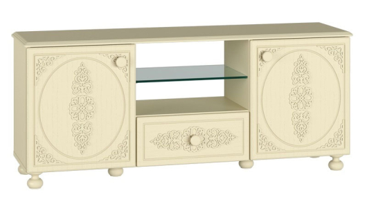 Тумба ТВ Ассоль Плюс АС-13 тумба для ТВ из набора классической мебели Ассоль. Фасады украшены декоративными элементами в классическом стиле. Ручки грибовидные.