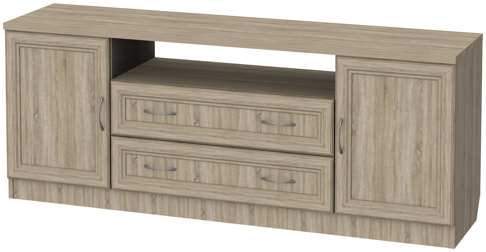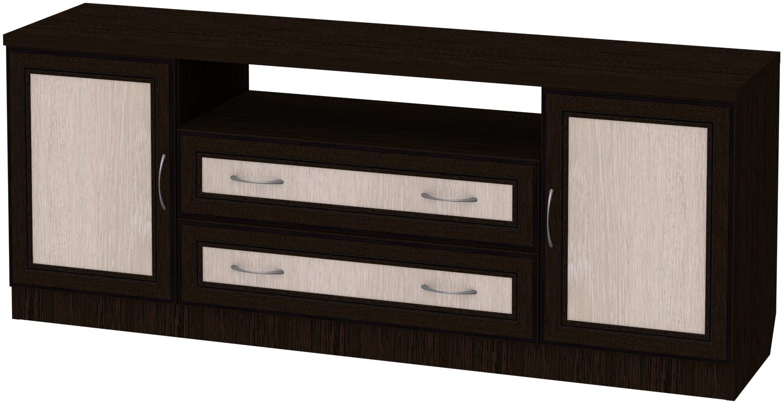 Тумба ТВ Гарун 502 станет практичным дополнением уютного интерьера вашей гостиной. Изделие поможет на правильной высоте разместить телевизор для более комфортного просмотра любимых сериалов и увлекательных телепередач. Открытая ниша создана для необходимой аппаратуры. Тумбы с дверцами и два выдвижных ящика пригодятся для аккуратного хранения наборов посуды, интересных книг, семейных фотоальбом, оригинальных предметов декора и многого другого.