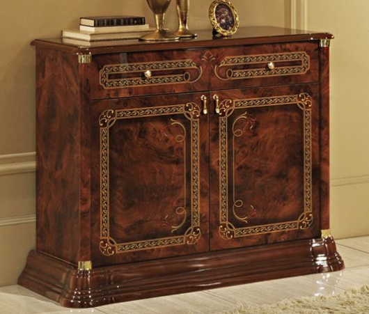 Данная модель выполнена в элегантном классическом стиле. Декоративные элементы на мебели помогут создать уникальный стиль в вашей комнате. Такая тумба идеально впишется в любой интерьер гостиной, а также приятно удивит вас своей функциональностью и практичностью.