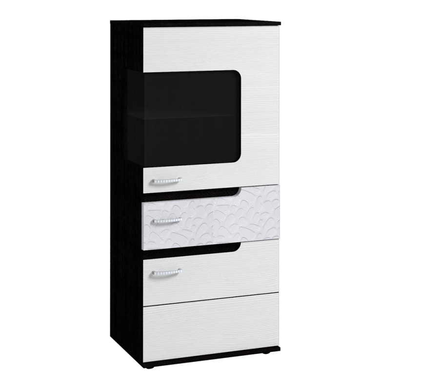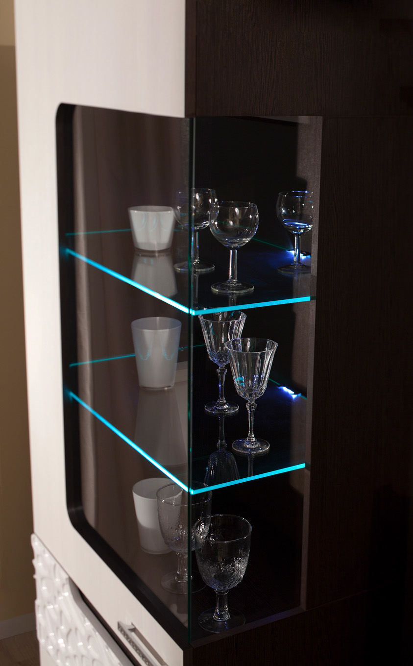 Оригинальная витрина выполненная в современном стиле, украсит Вашу гостиную. Витрина компактная, функциональная и стильная. Дополнительно вы можете приобрести комплект подсветки, которая эффектно выделит коллекцию посуды или предметы декора, размещенные в витрине.