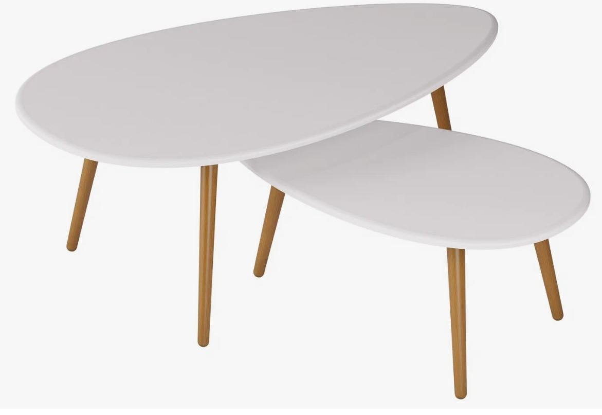 Стол журнальный Твинс оригинальное решение для интерьера. Два стола разных размеров составляют в единую композицию в скандинавском стиле. Столешница в белом цвете идеально сочетаетсяи с деревянными ножками. -