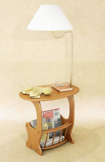 Если вы любите проводить вечера, уютно устроившись в кресле за вязанием или вышиванием, то вам, несомненно, пригодится стол журнальный 20649 с лампой. В его конструкции предусмотрено несколько нюансов. В первую очередь, в нем, конечно же, присутствует столешница. Во-вторых, в нем есть вместительная «корзина». Кроме того, в него даже встроена лампа с огромным абажуром.