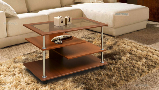 Стол журнальный № 4 - незаменимый предмет в вашем доме. Его интересный дизайн способен стать прекрасным дополнением в Вашей гостиной. А декоративную полку можно использовать для размещения фотографий, сувениров, хранения журналов, книг, пультов и современной техники.