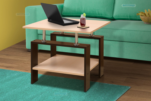 Стол журнальный № 6 - незаменимый предмет в вашем доме. Его интересный дизайн способен стать прекрасным дополнением в Вашей гостиной. А декоративную полку можно использовать для размещения фотографий, сувениров, хранения журналов, книг, пультов и современной техники.