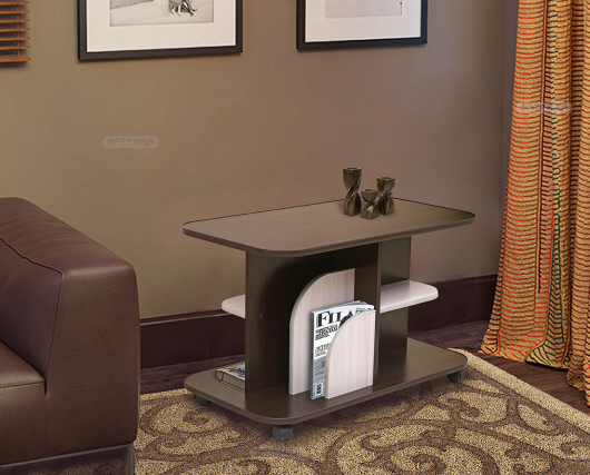 Стол журнальный № 7 - незаменимый предмет в вашем доме. Его интересный дизайн способен стать прекрасным дополнением в Вашей гостиной. А декоративную полку можно использовать для размещения фотографий, сувениров, хранения журналов, книг, пультов и современной техники.