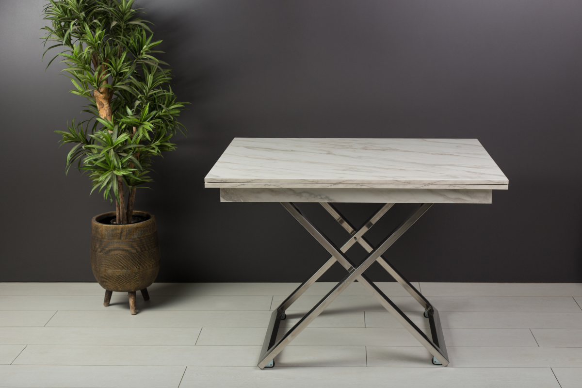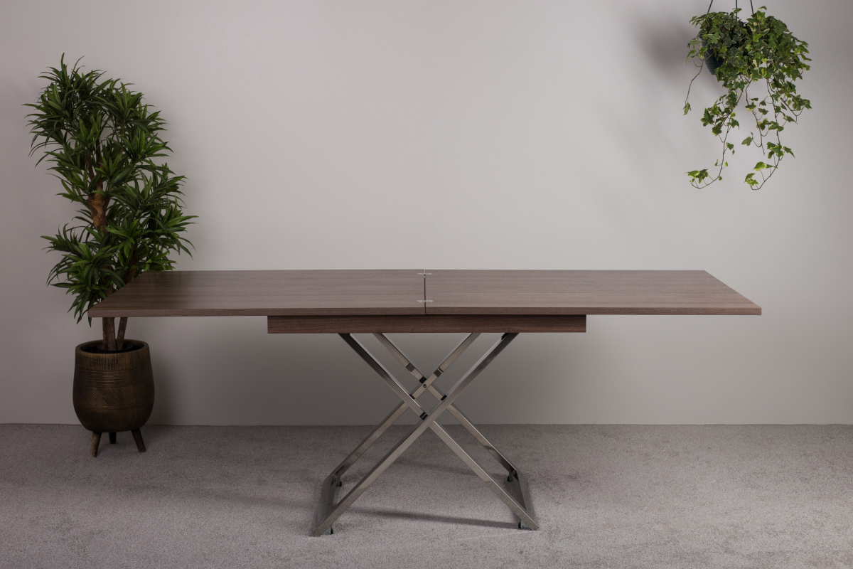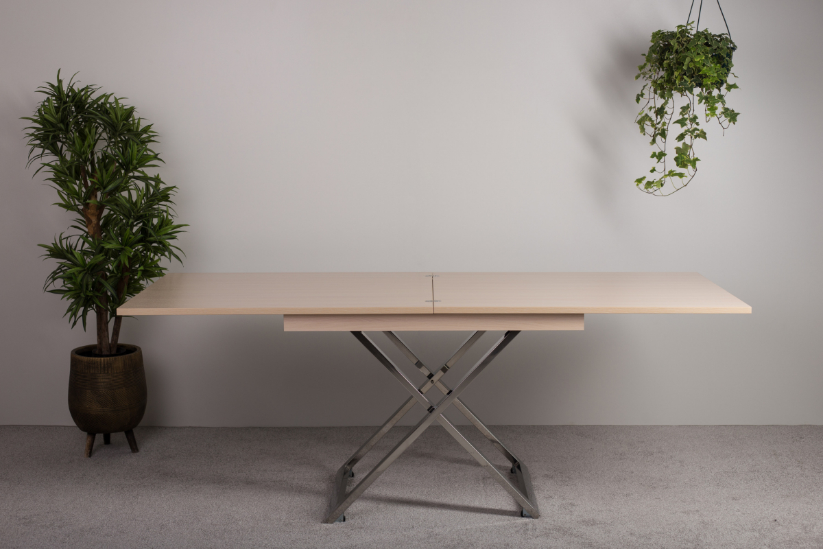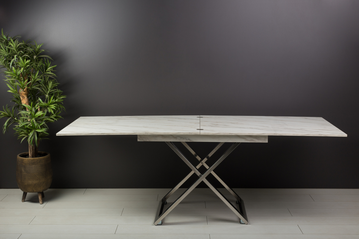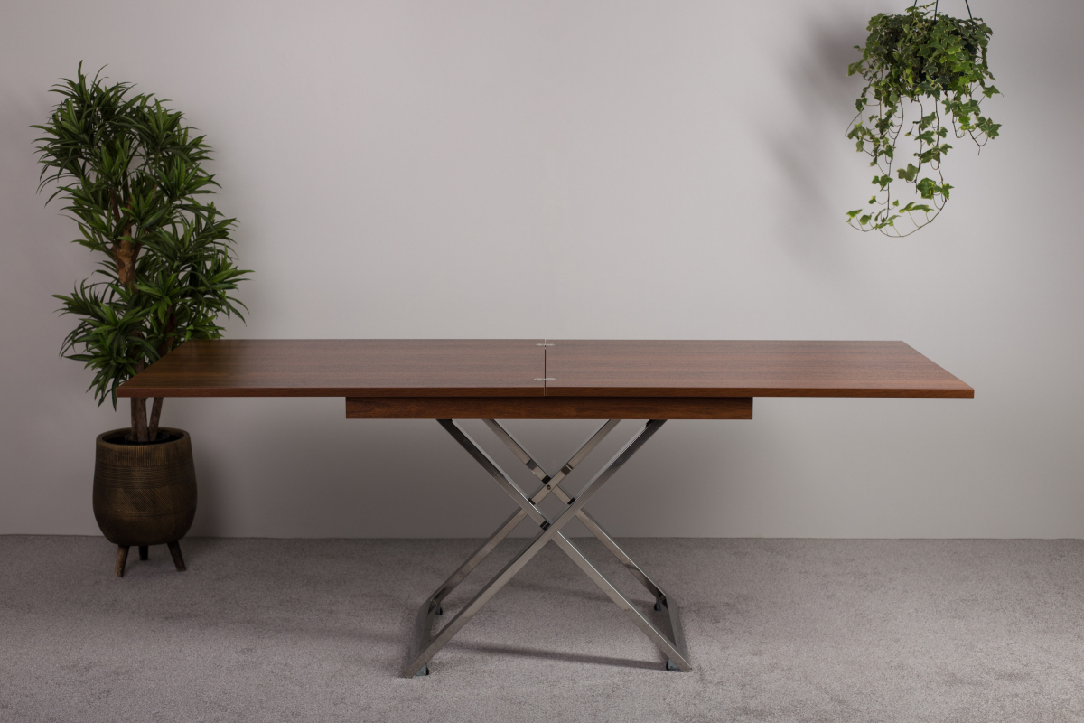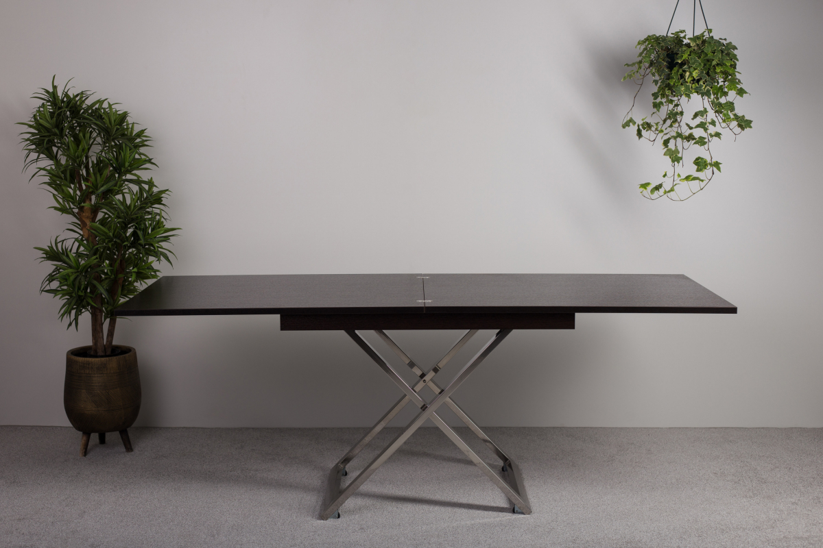 Стол-трансформер Cross станет настоящей находкой для обустройства уютного помещения. Данное изделие в сложенном виде совершенно не занимает места, но в “рабочем” положении просторен и позволяет с комфортом разместиться целой компании людей. Все узлы трансформации закрыты шумоизолирующими материалами, что обеспечивает их практически бесшумную работу. Стойки сделаны из нержавеющей стали, отполированной до зеркального блеска. А отсутствие хрома и другого декоративного покрытия гарантирует, что металл в течение долгих лет сохранит изначальный глянец без потускнения вне зависимости от условий эксплуатации.