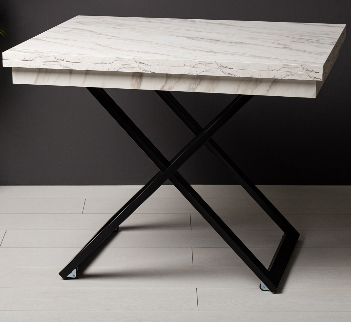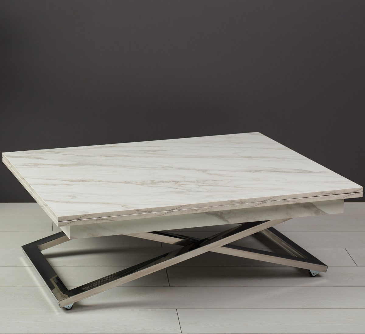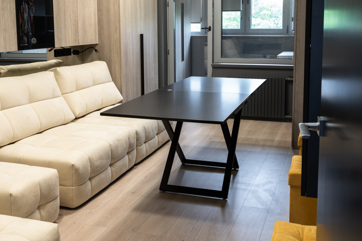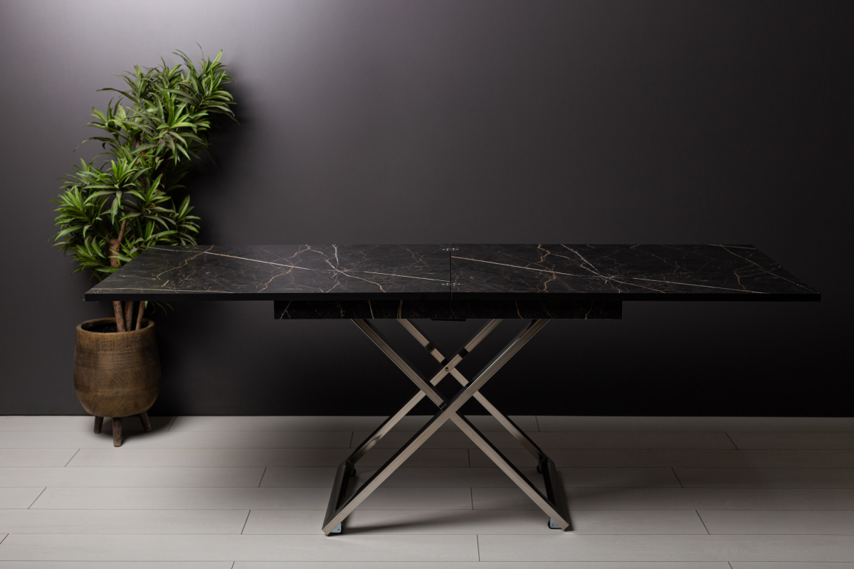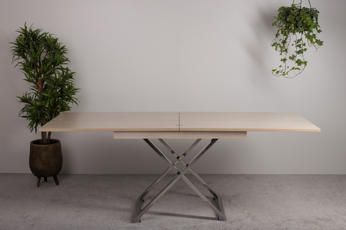 Стол-трансформер Cross станет настоящей находкой для обустройства уютного помещения. Данное изделие в сложенном виде совершенно не занимает места, но в “рабочем” положении просторен и позволяет с комфортом разместиться целой компании людей. Все узлы трансформации закрыты шумоизолирующими материалами, что обеспечивает их практически бесшумную работу. Стойки сделаны из нержавеющей стали, отполированной до зеркального блеска. А отсутствие хрома и другого декоративного покрытия гарантирует, что металл в течение долгих лет сохранит изначальный глянец без потускнения вне зависимости от условий эксплуатации.