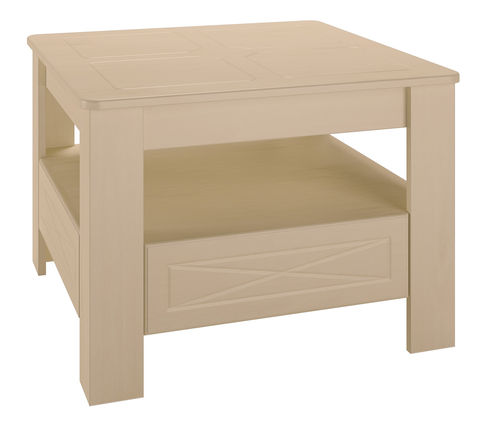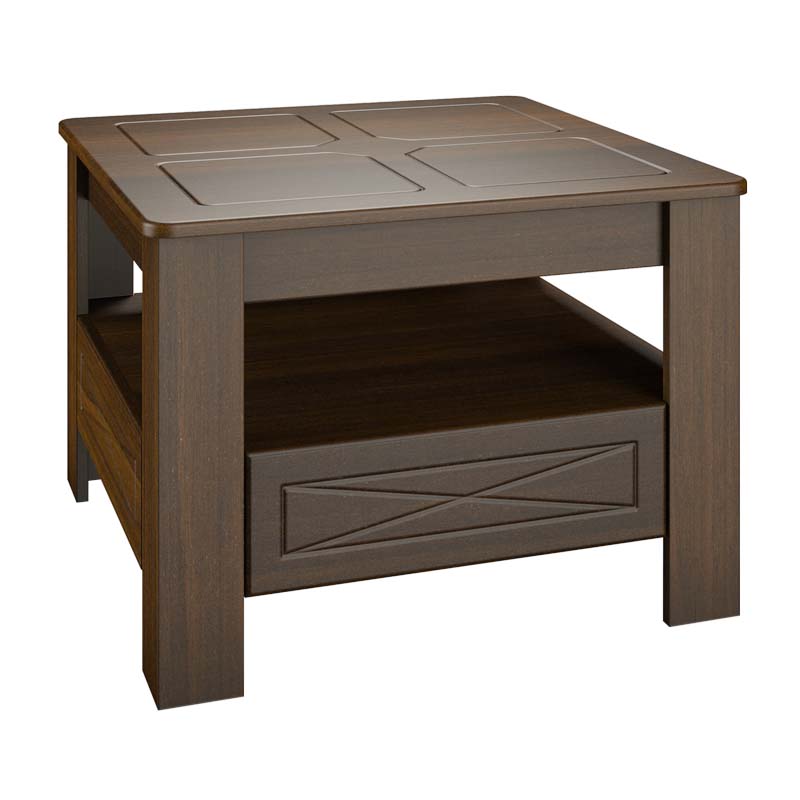 Журнальный столик внесёт изюминку в интерьер Вашей гостиной. Под столешницей находится открытая полка, куда можно поместить журналы и газеты. Столик изготовлен из ламинированной ДСП 16 мм. На фасаде и столешнице столика применяется МДФ с фрезеровкой. Все торцы деталей изделия оклеиваются ПВХ-кромкой, что обеспечивает более долгий срок службы мебели.