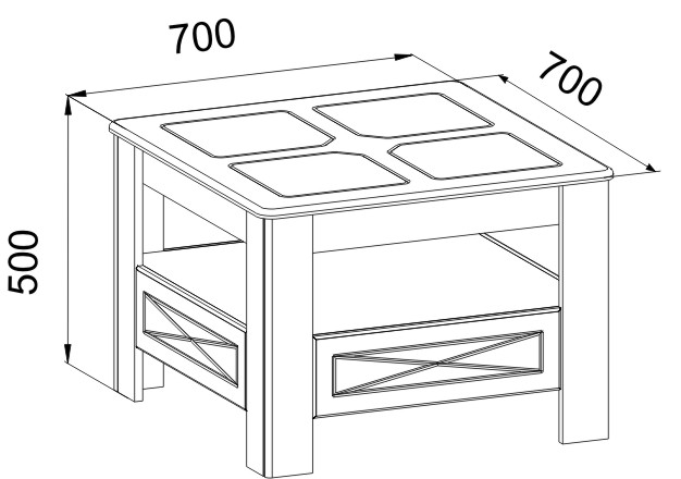 Ширина, мм 700 Глубина, мм 700 Высота, мм 500 ?МатериалМатериал изготовленияЛДСП, МДФ Производитель Вариантов исполнения 1 -