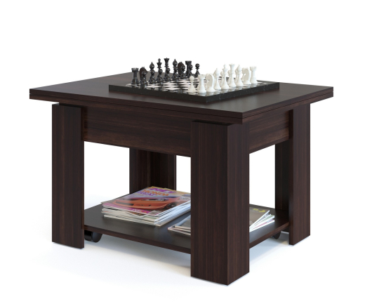 Журнальный столик СЖ-1 очень удобная модель. Столик можно разложить. Очень удобно для небольшого чаепития. Внизу расположена полка для журналов, пультов и прочих мелочей. Столик оборудован поворотными роликами, что облегчит его перемещение по комнате.