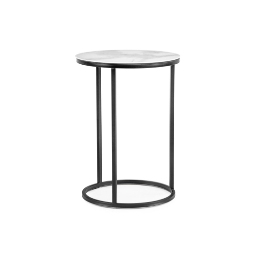 Журнальный столик Иберис предназначен для размещения в гостиной, на балконе или лоджии, в садовой беседке. Опоры выполнены из металла, а столешница из стекла покрытого матовой пленкой под белый мрамор. Ноги прямые с устойчивым каркасом. Стол больше подходит как консольный, кофейный или чайный, поэтому эргономично впишется в интерьер, выдержанный в стиле Лофт. -