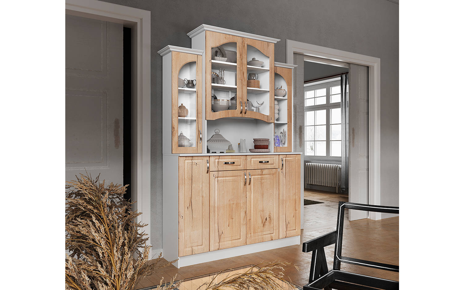 Буфет Прованс-014 станет основной составляющей рабочей зоны на вашей кухни. За распашными дверьми вы сможете разместить различную красивую посуду, чайные наборы, стеклянные бокалы, алкогольные напитки и многое другое. Данная модель является результатом кропотливой работы, а также отлично сочетает в себе опыт, удобство и практичность.