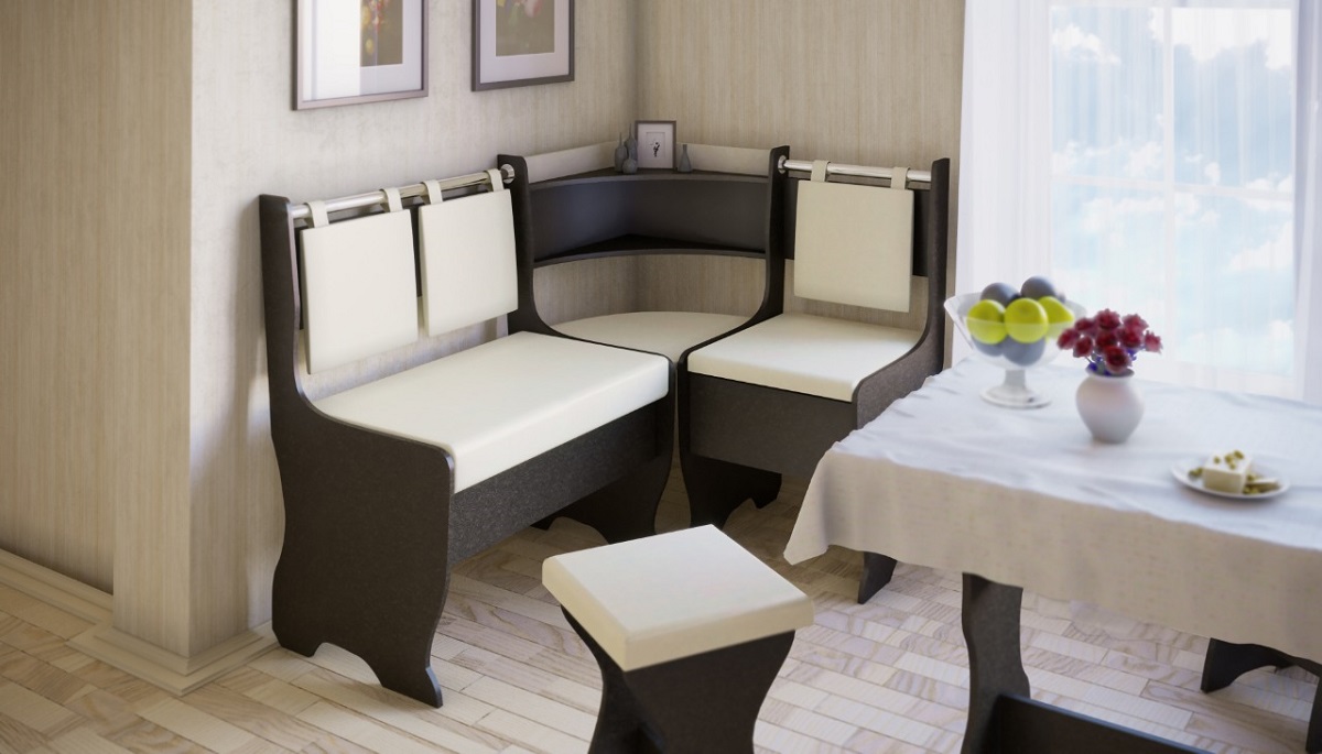 Кухонный уголок 3 станет отличным решением для обустройства уютного места, где Вы будете собираться всей семьей для совместного приема пищи. На таком диване можно с комфортом отдохнуть во время трапезы, а также расположить гостей во время праздничного застолья. Высокая спинка создана не только для удобной посадки, а также для защиты поверхности стен от повреждений. Для изготовления каркаса используется ЛДСП, а обивка выполнена из искусственной кожи.