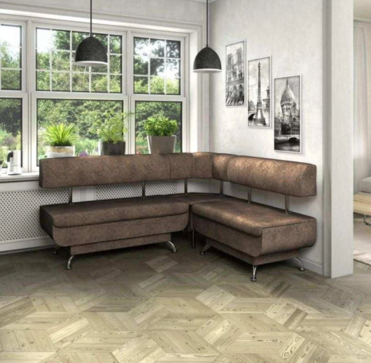 Кухонный угловой диван Валенсия порадует Вас своим удобством. Кухонные уголки Валенсия интересны плавностью линий и единой сплошной мягкой спинкой. Фигурное оформление устойчивых боковых панелей с хромированными ножками придает элегантный вид всей модели, а различные типоразмеры позволяют выбрать наиболее подходящий уголок по размерам вашей кухни.