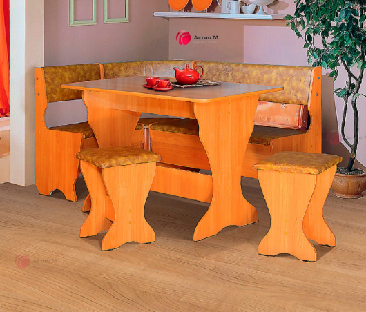 Компактный кухонный набор Уют-2 поможет создать уют на Вашей кухне, организует удобную обеденную зону, а также предоставит достаточно места для сидения. -