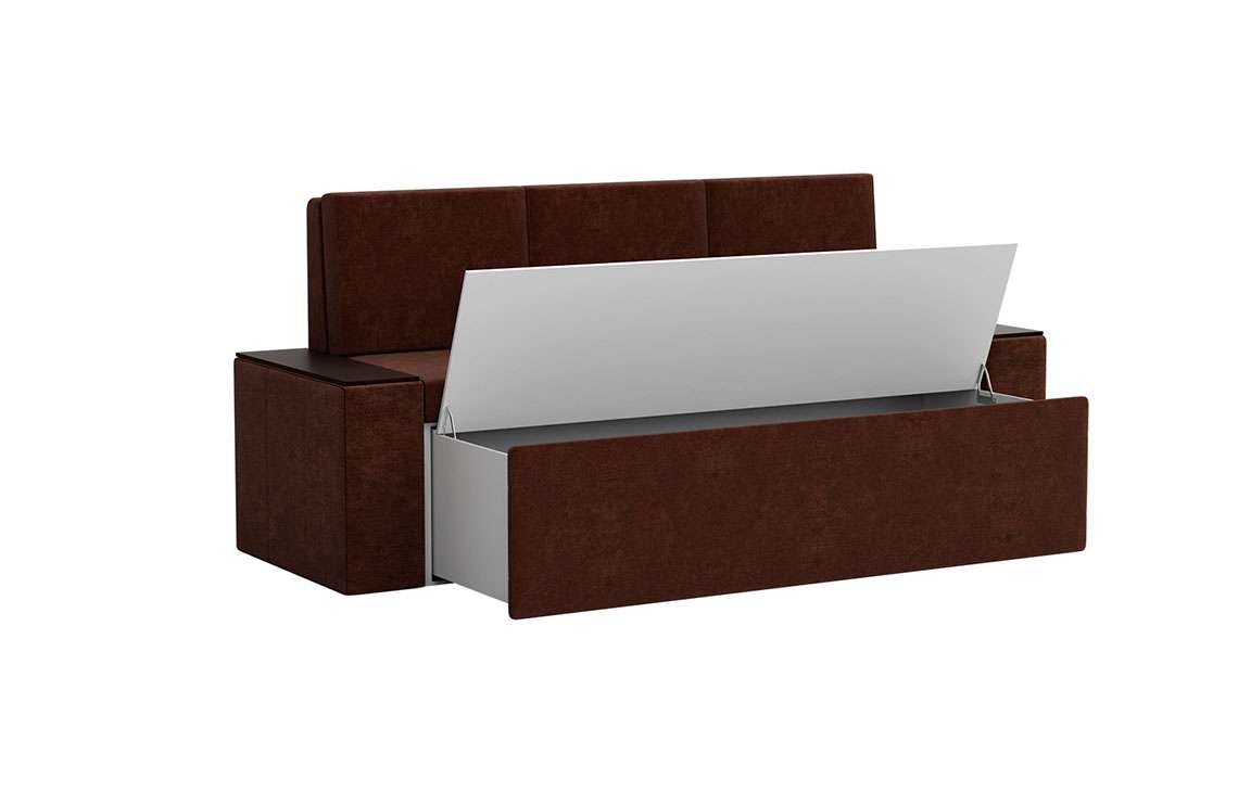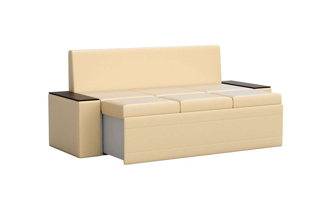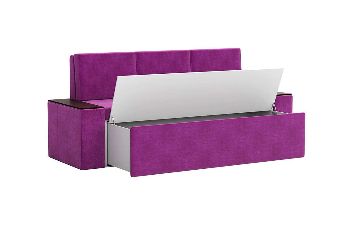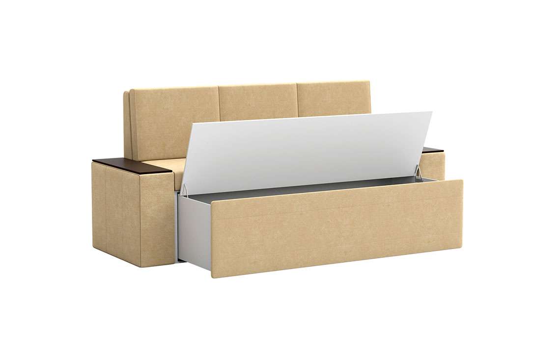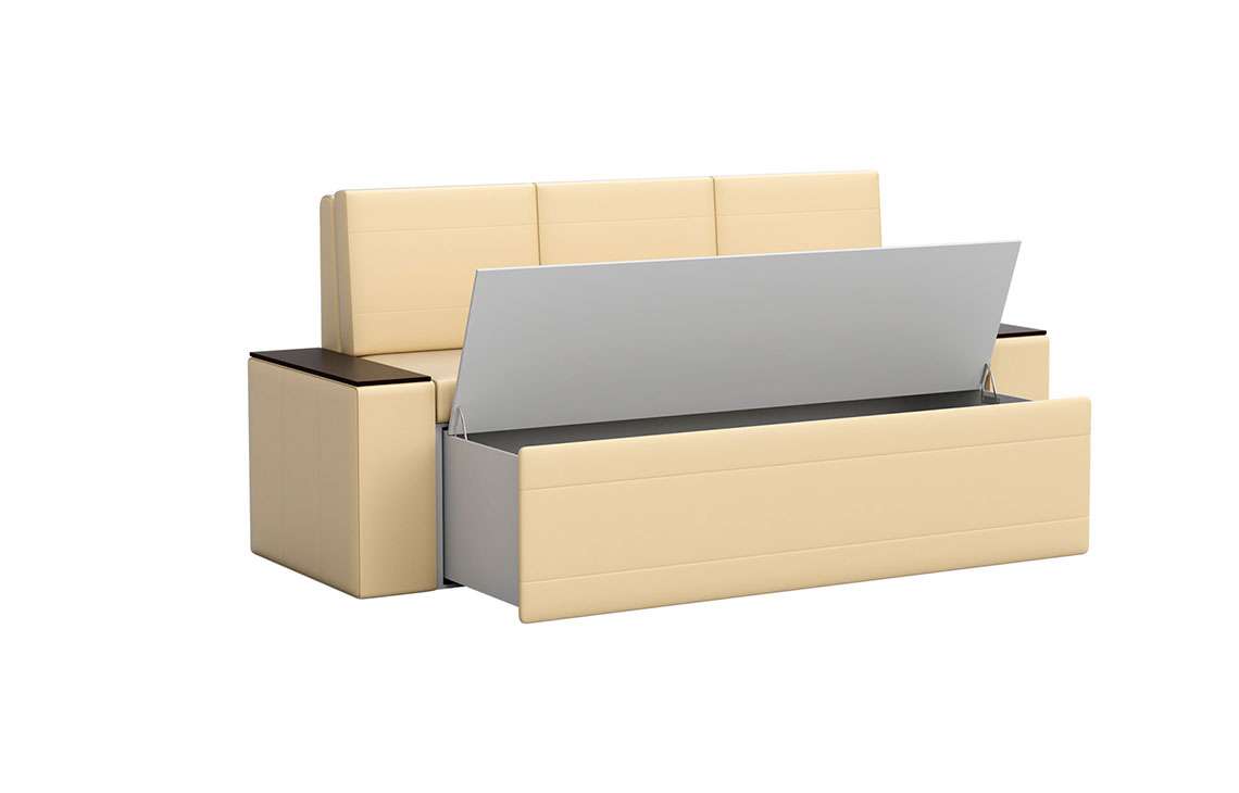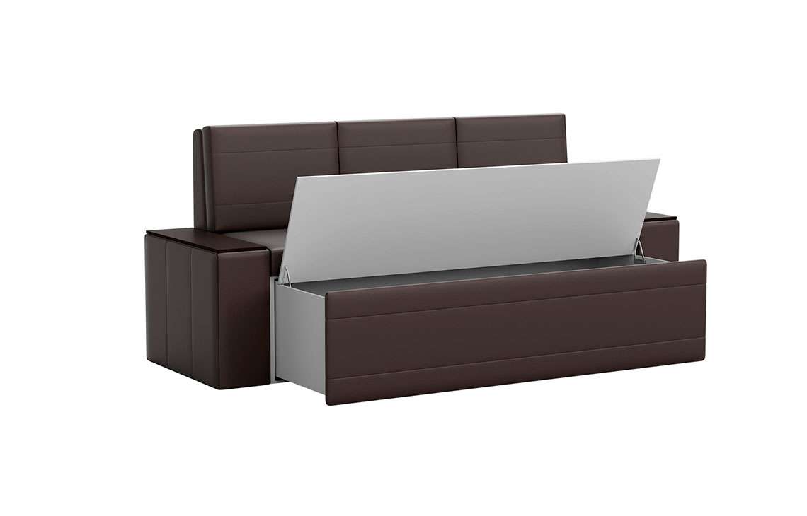 Кухонный диван Лина станет отличным решением для обустройства уютного места, где вы будете собираться всей семьей для совместного приема пищи. На таком диване можно с комфортом отдохнуть во время трапезы, а также расположить гостей во время праздничного застолья. При необходимости вы сможете разложить диван, получив полноценное и достаточно удобное спальное место. Вместительный ящик пригодится для хранения постельного белья и других различных предметов.