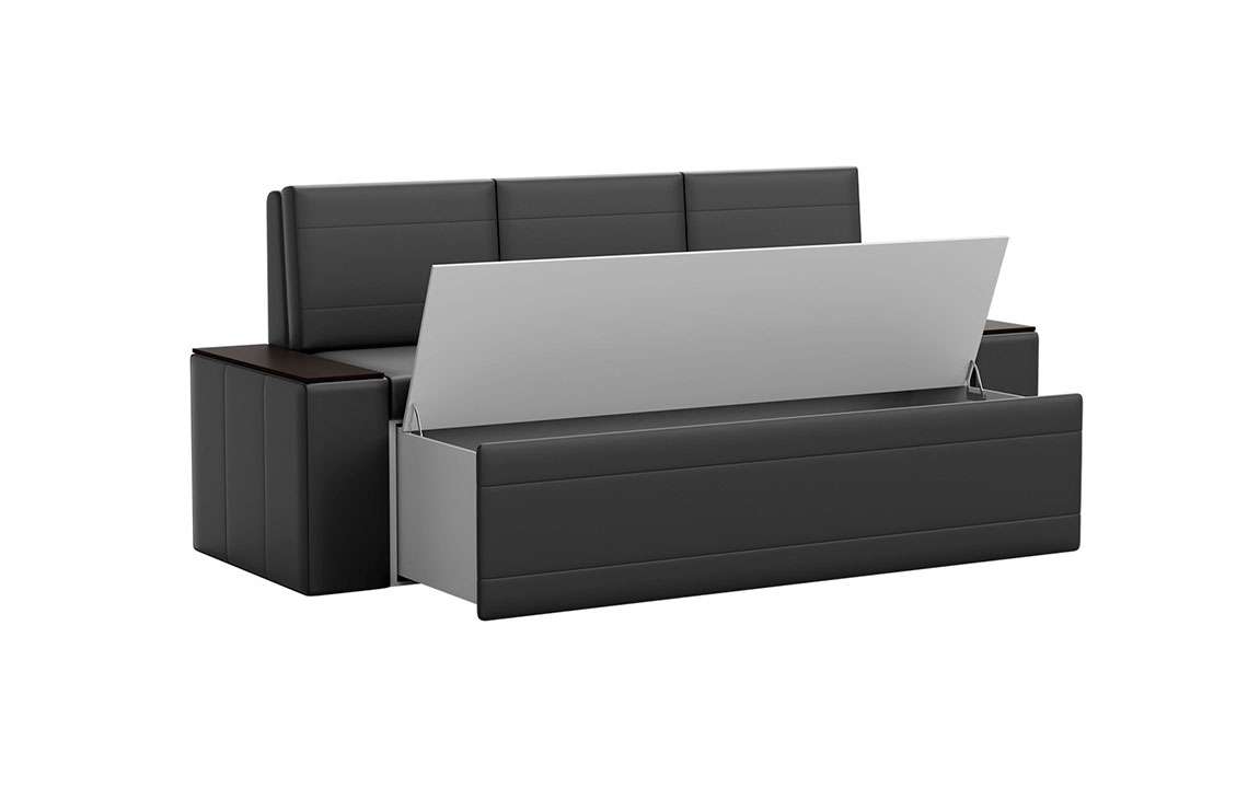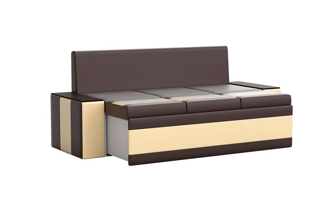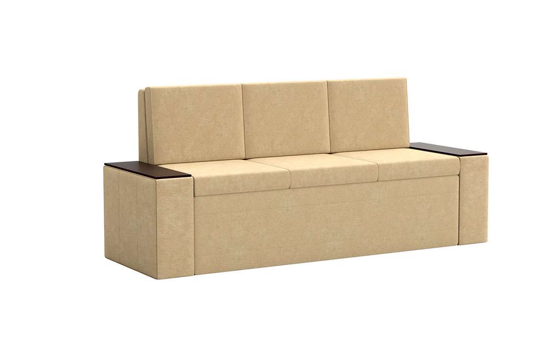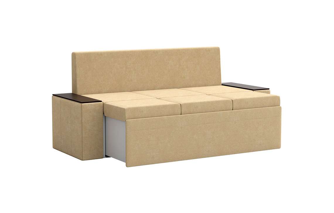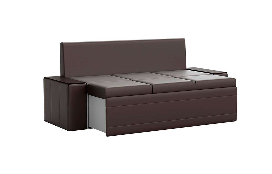 Кухонный диван Лина станет отличным решением для обустройства уютного места, где вы будете собираться всей семьей для совместного приема пищи. На таком диване можно с комфортом отдохнуть во время трапезы, а также расположить гостей во время праздничного застолья. При необходимости вы сможете разложить диван, получив полноценное и достаточно удобное спальное место. Вместительный ящик пригодится для хранения постельного белья и других различных предметов.