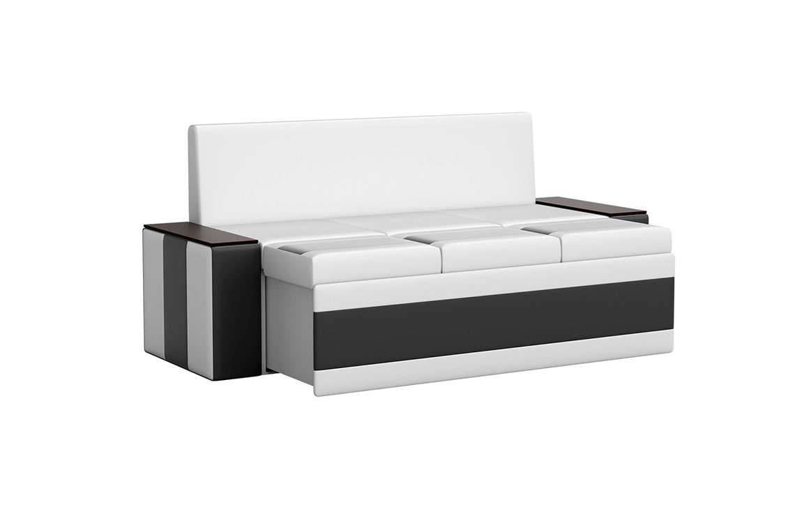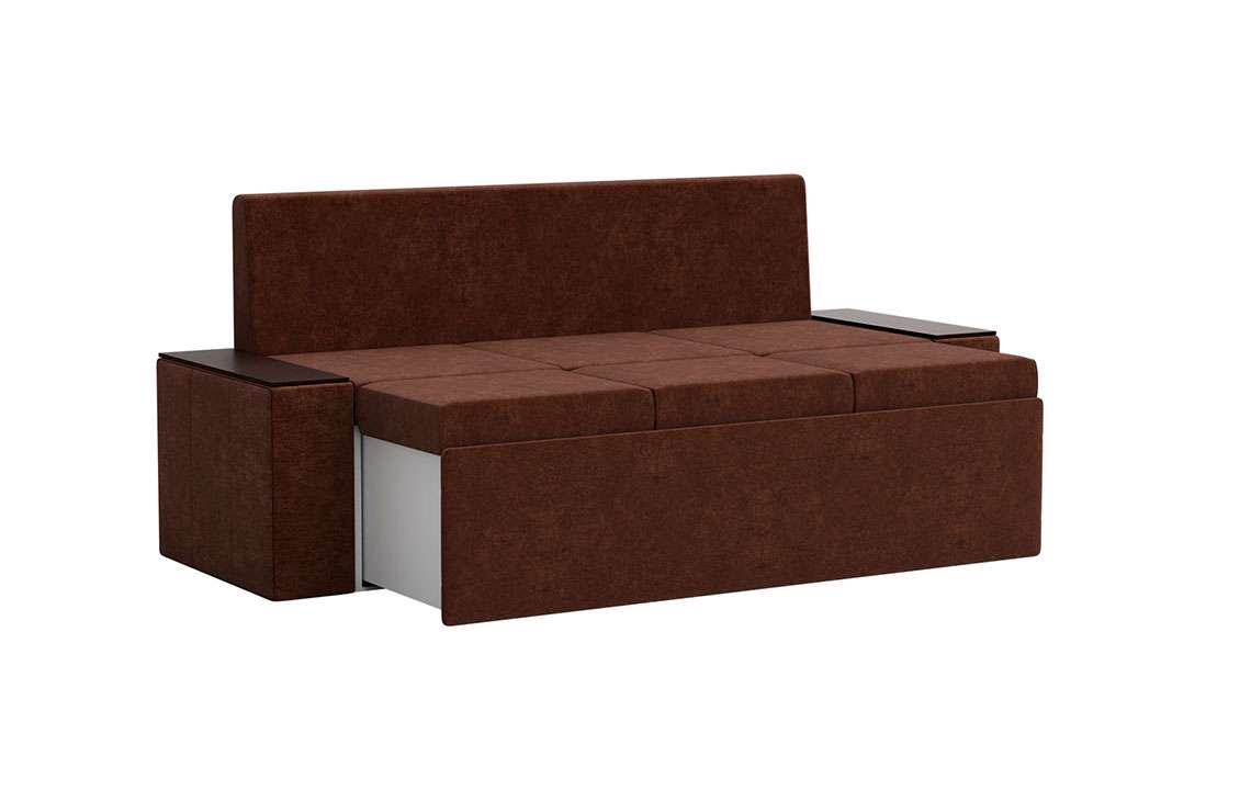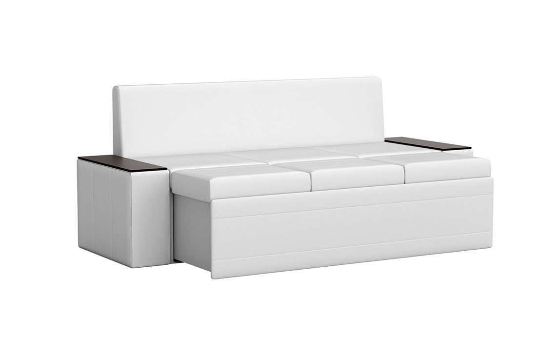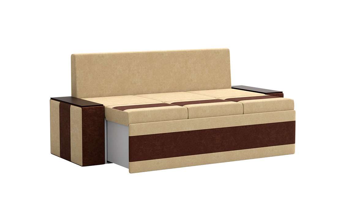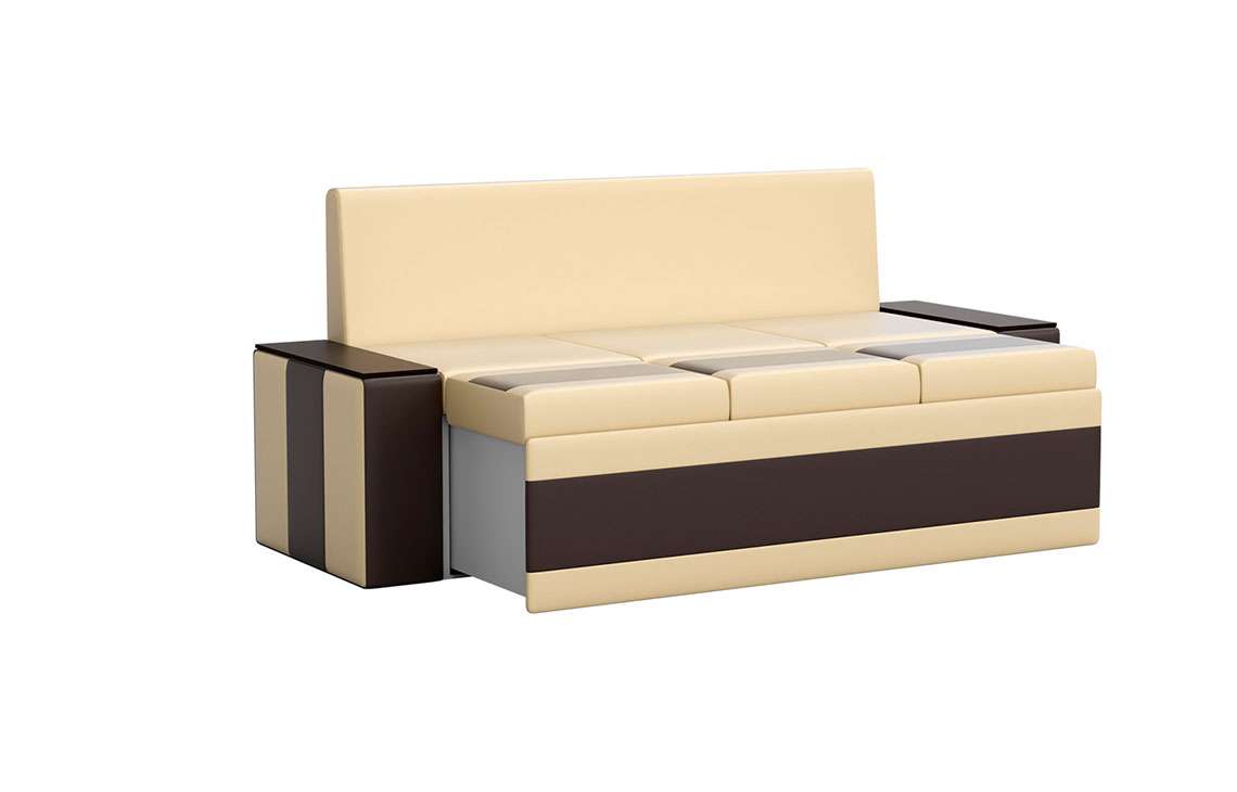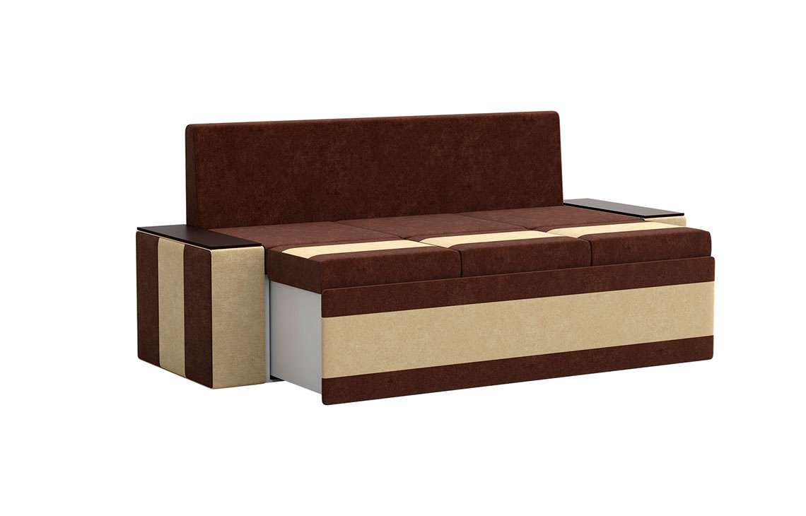 Кухонный диван Лина станет отличным решением для обустройства уютного места, где вы будете собираться всей семьей для совместного приема пищи. На таком диване можно с комфортом отдохнуть во время трапезы, а также расположить гостей во время праздничного застолья. При необходимости вы сможете разложить диван, получив полноценное и достаточно удобное спальное место. Вместительный ящик пригодится для хранения постельного белья и других различных предметов.