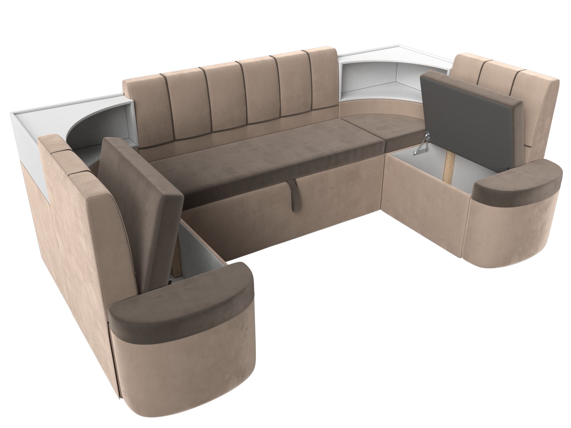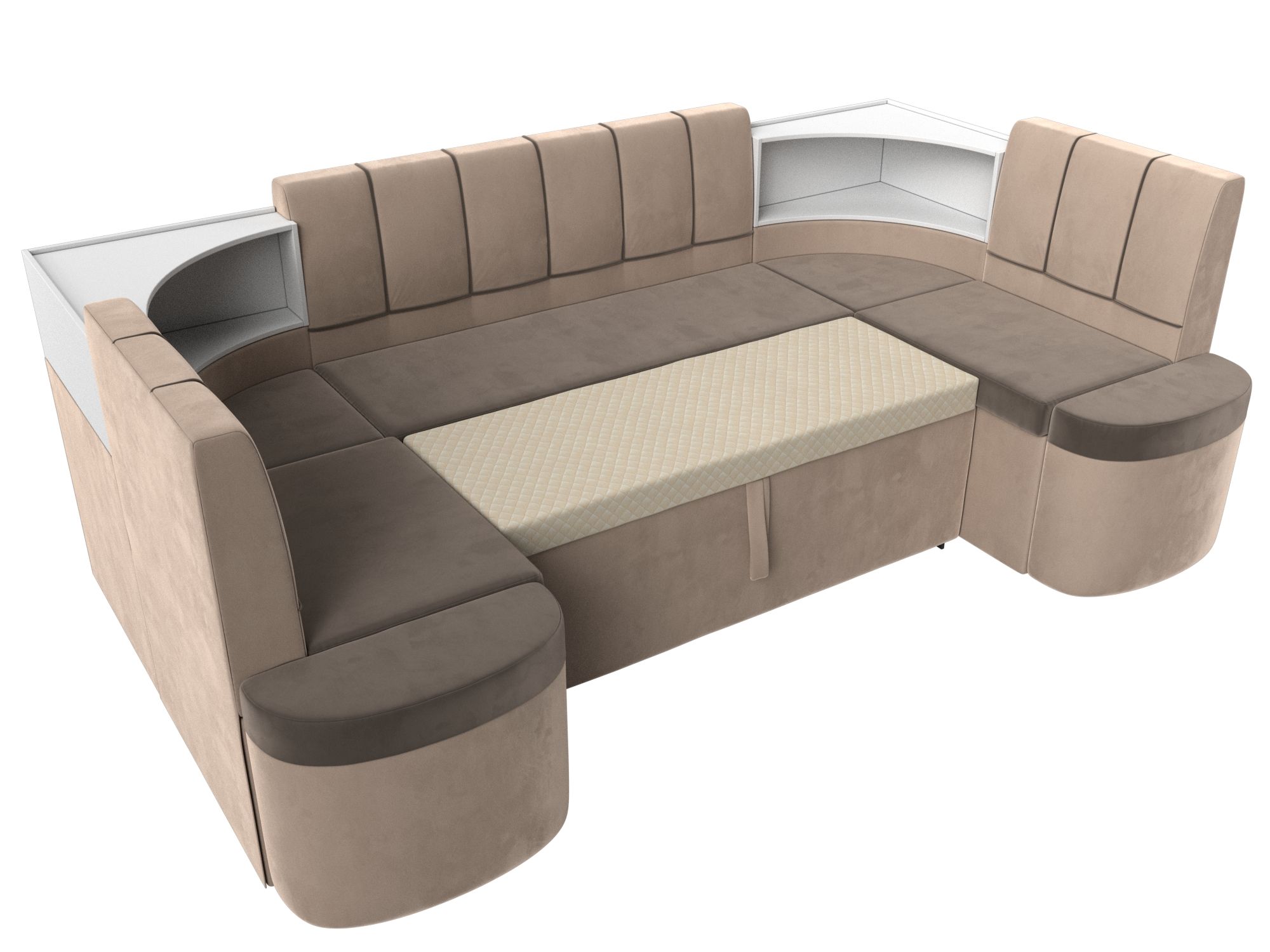 Кухонный угловой диван Тефида станет отличным решением для обустройства уютного места, где вы будете собираться всей семьей для совместного приема пищи. На таком диване можно с комфортом отдохнуть во время трапезы, а также расположить гостей во время праздничного застолья. При необходимости вы сможете разложить диван, получив полноценное и достаточно удобное спальное место. Достаточно вместительный ящик создан для аккуратного хранения постельного белья и других различных предметов.