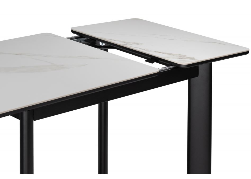 Керамический стол Кина alpine white/черный стильное решение для современной кухни. Стол Кина раскладной, что позволит собрать всю семью вместе. Столешница с керамикой, что делает стол практичным и лёгким в уходе. -