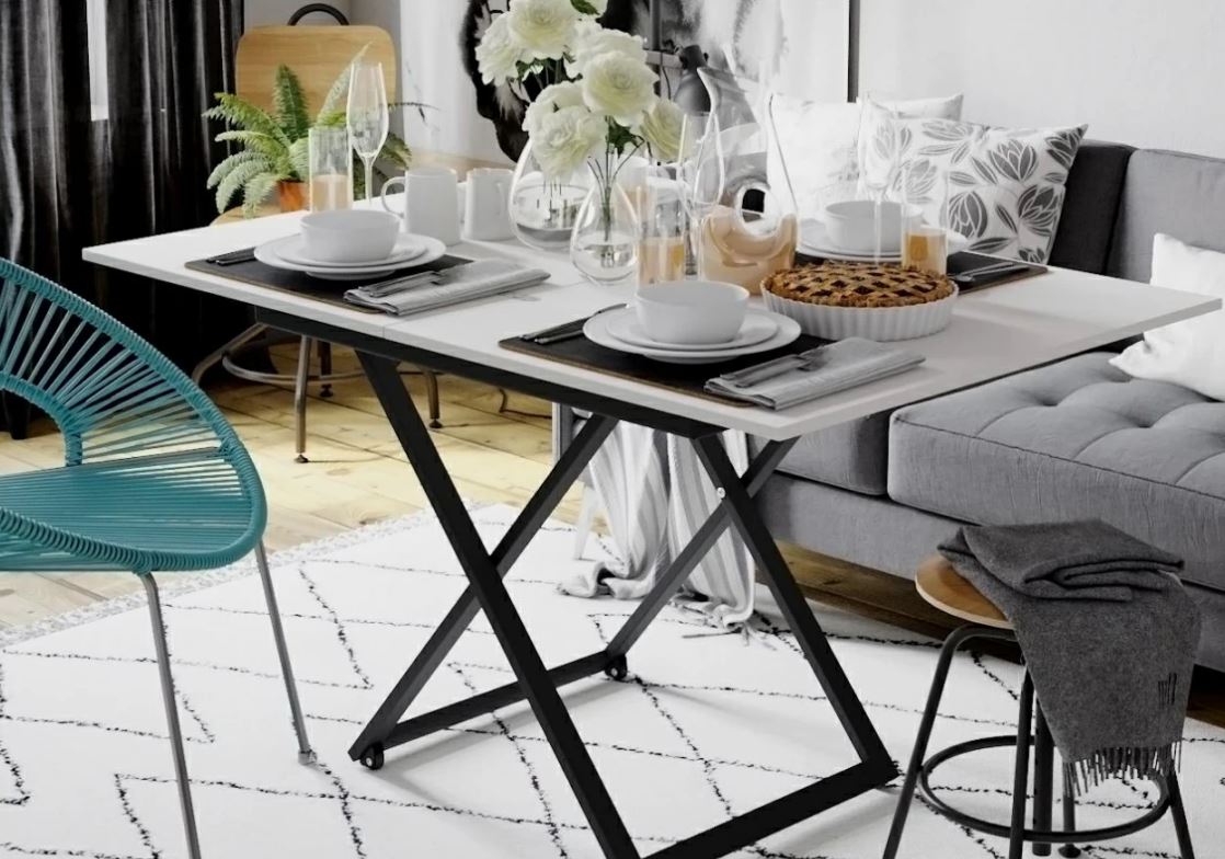 Стол-трансформер Генри универсальный предмет интерьера, который выполняет разные функции. Стол можно использовать и для приёма гостей, и для отдыха за прочтением книги, и в качестве рабочего места. Особенностью такого предмета мебели является его способность трансформироваться: за считанные секунды можно увеличить столешницу или поменять высоту. Размеры столешницы в сложенном состоянии 905х680 мм, в разложенном-1360х905 мм. По высоте стол имеет 2 положения: 400 и 750 мм. Основное преимущество данной модели стола в том, что при любой высоте он трансформируется в стол с увеличенной площадью столешницы, т.е. при любом из двух положений, столешницу можно разложить до размера 1360х905 мм. В таком положении стол можно использовать как журнальный, стол для игры с детьми и т.п. Каркас стола и ножки выполнены из прочного металлического профиля 40*20 мм в цвете черный матовый, столешница- из ЛДСП марки EGGER 16 мм. Стол на роликовых опорах, что без труда позволит перемещать его в помещении, при этом не царапая и не повреждая напольное покрытие.