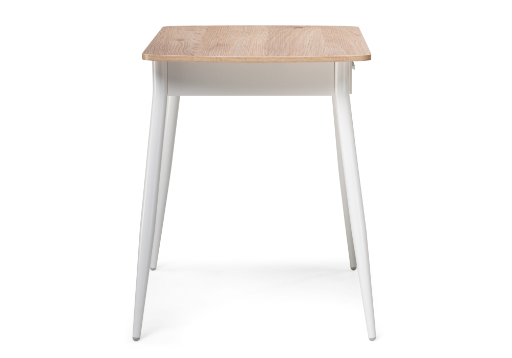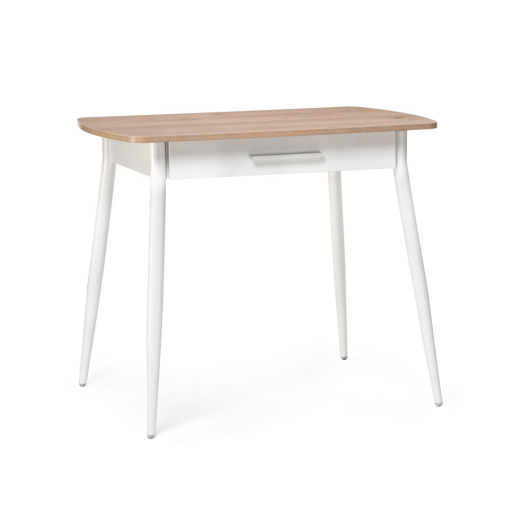 Стол Ревари эврика / белый предназначен для размещения на кухне. Опоры выполнены из металла, а столешница из ЛДСП. Текстурная поверхность гармонично сочетается с каркасом в белом цвете. Стол эргономично впишется в интерьер, выдержанный в современном стиле. Модель оснащена дополнительным выдвижным ящиком для столовых приборов. -