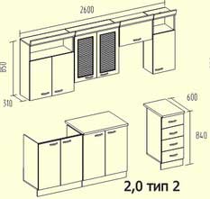 Варианты размеров кухни указаны на чертежах. Цена зависит от варианта комплектации. Указана за минимальные габариты кухни. Цена указана с учётом столешницы 26 мм.