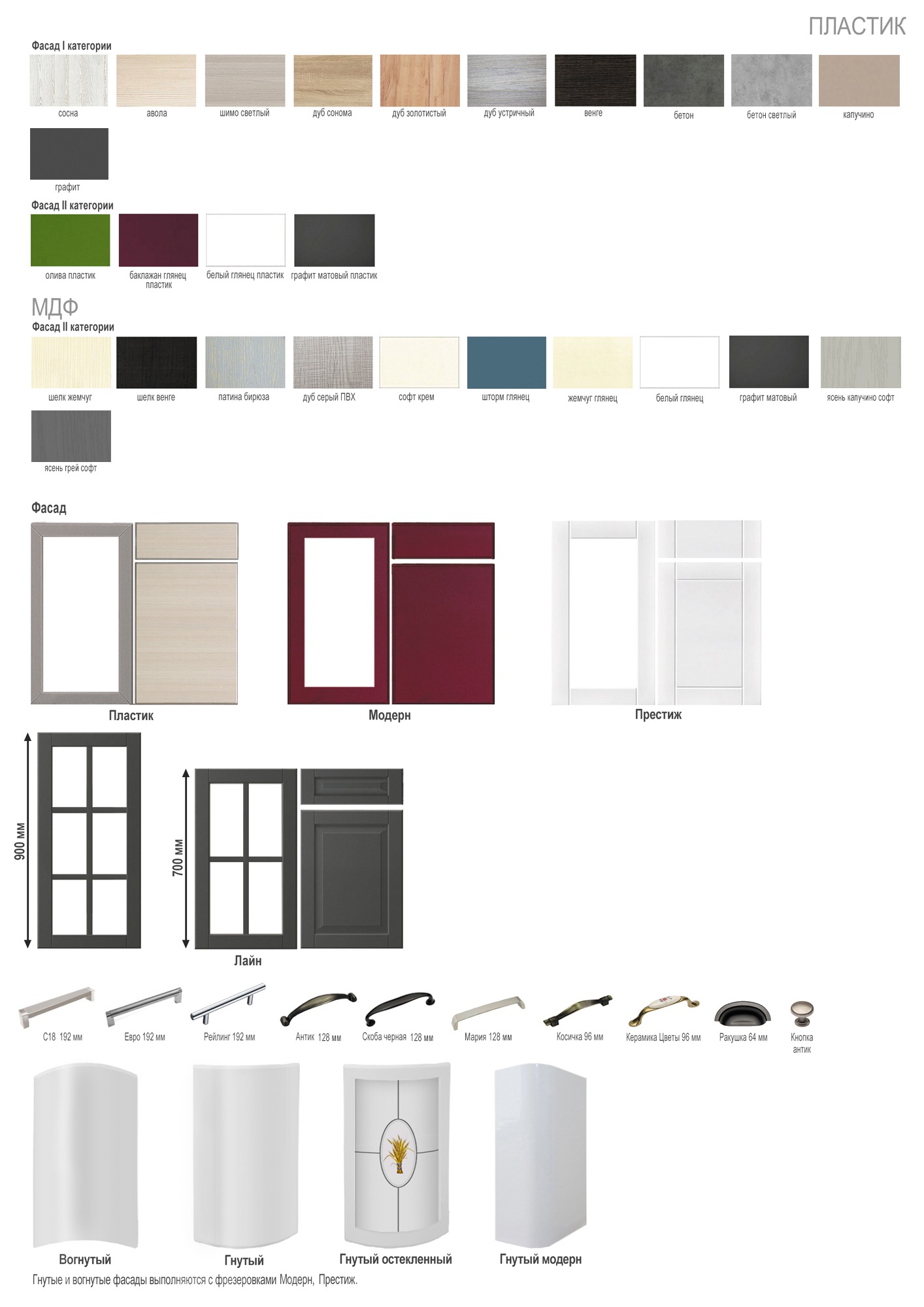 - фасад Пластик или МДФ в плёнке ПВХ;