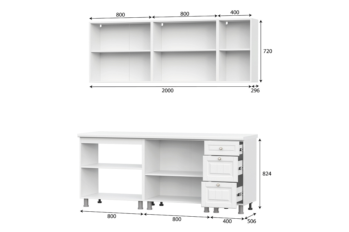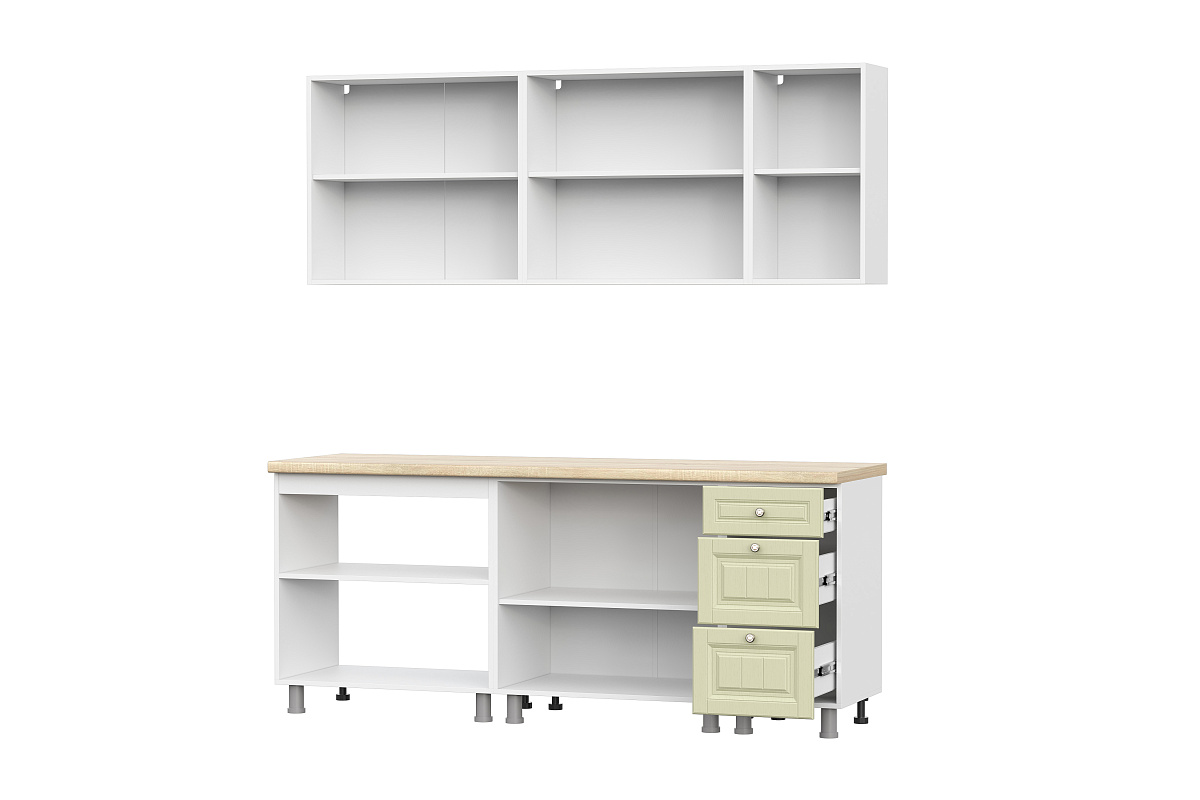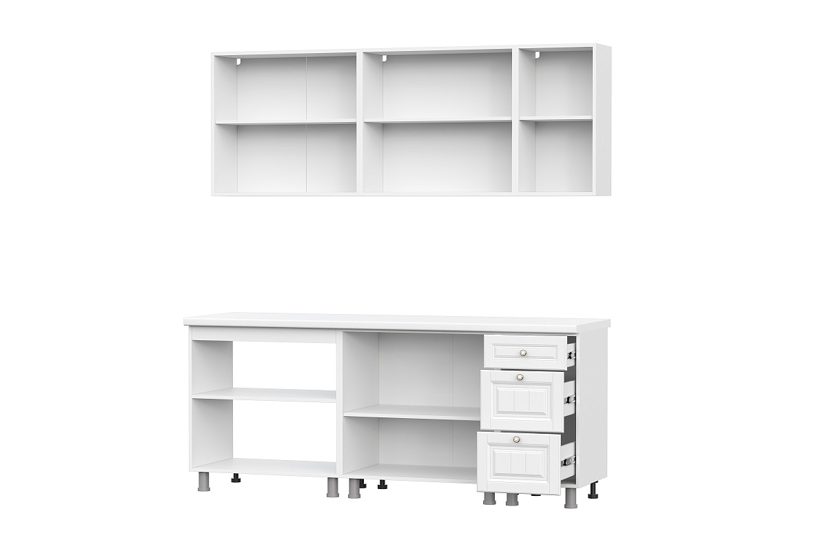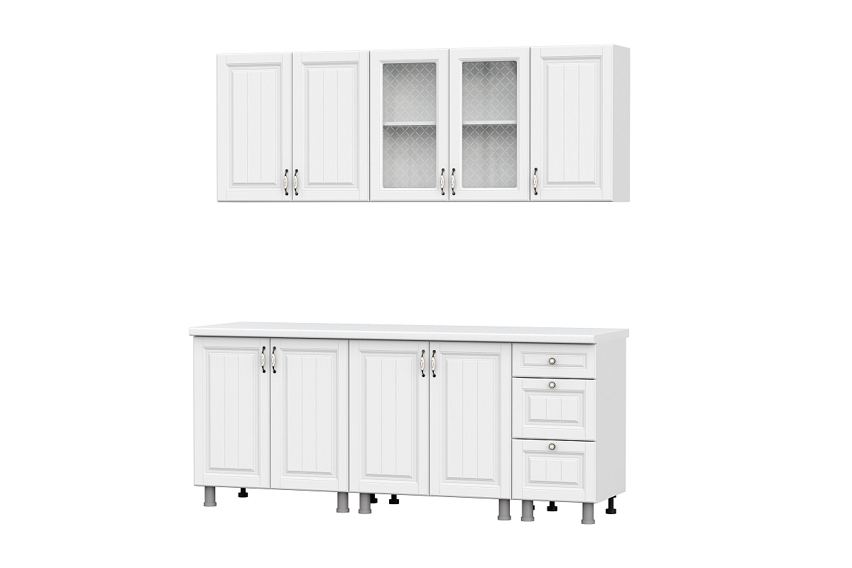 Кухонный гарнитур Прованс МДФ 2,0 бюджетное современное решение для вашей кухни. Роликовые направляющие в выдвижных ящиках. Корпус кухни выполняется в белом цвете.