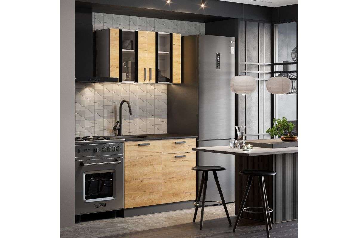 Кухня Абрау 1,0 м стильное решение для современной кухни. Идеально впишется в любой современный стиль от скандинавского до лофта . Подойдёт для небольших кухонь, квартир-студий или офиса. Древесная текстура кухни делает эту модель очень уютной. Столешница 1000 мм чёрная матовая входит в комплектацию. Нижняя часть кухни имеет очень функциональное наполнение. -