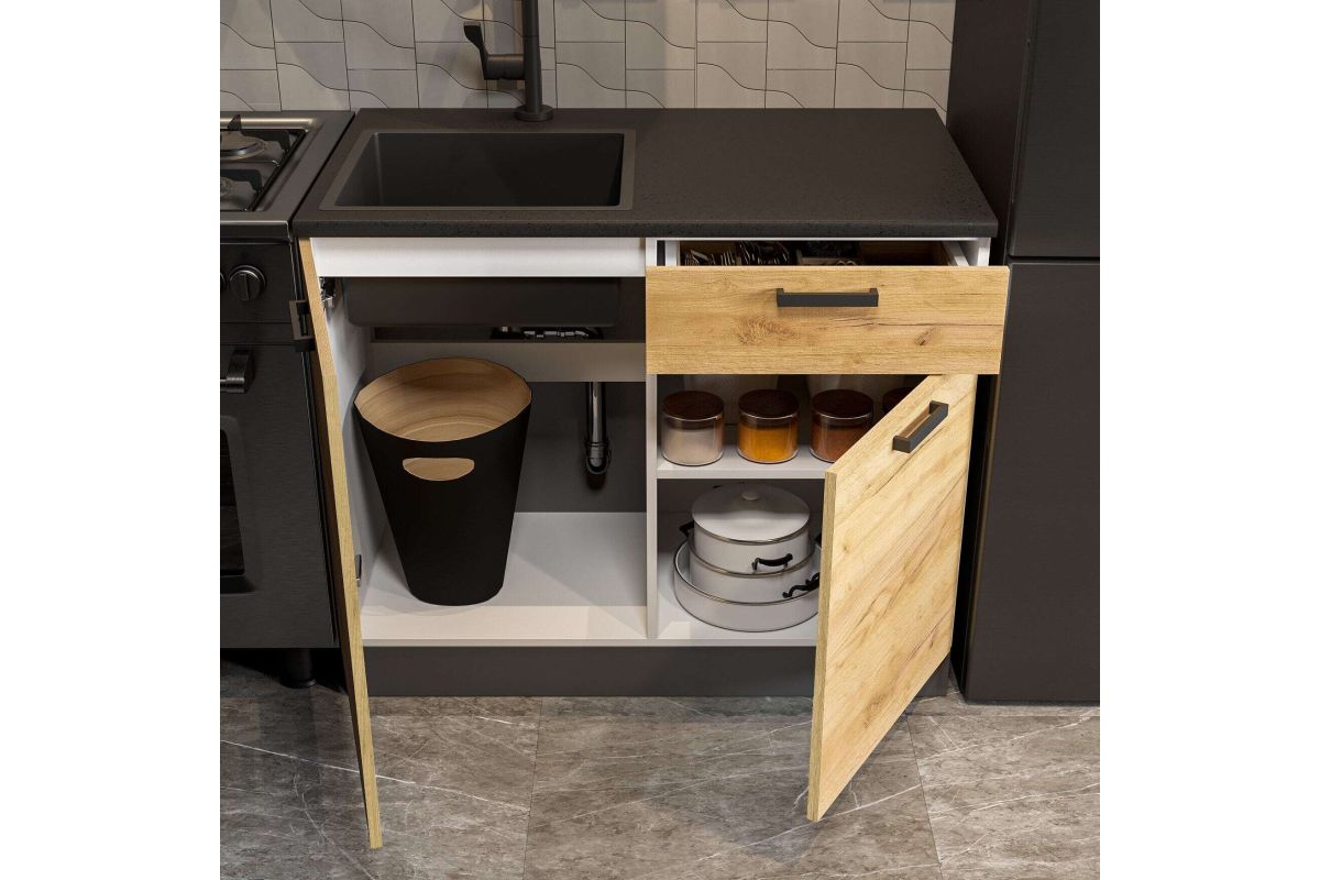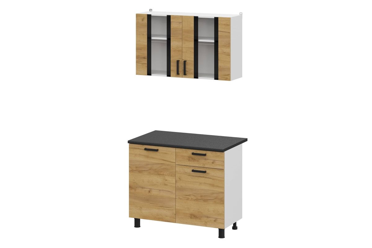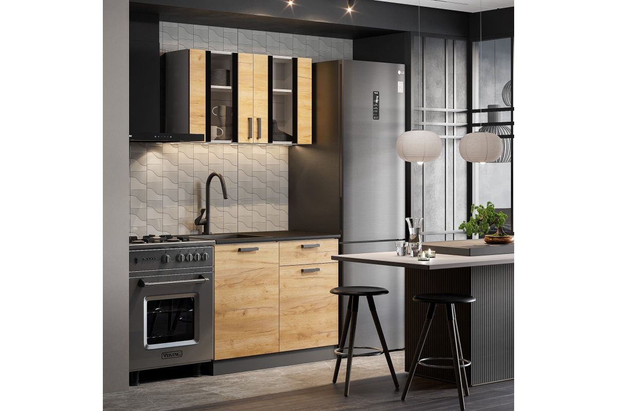Кухня Абрау 1,0 м стильное решение для современной кухни. Идеально впишется в любой современный стиль от скандинавского до лофта . Подойдёт для небольших кухонь, квартир-студий или офиса. Древесная текстура кухни делает эту модель очень уютной. Столешница 1000 мм чёрная матовая входит в комплектацию. Нижняя часть кухни имеет очень функциональное наполнение.