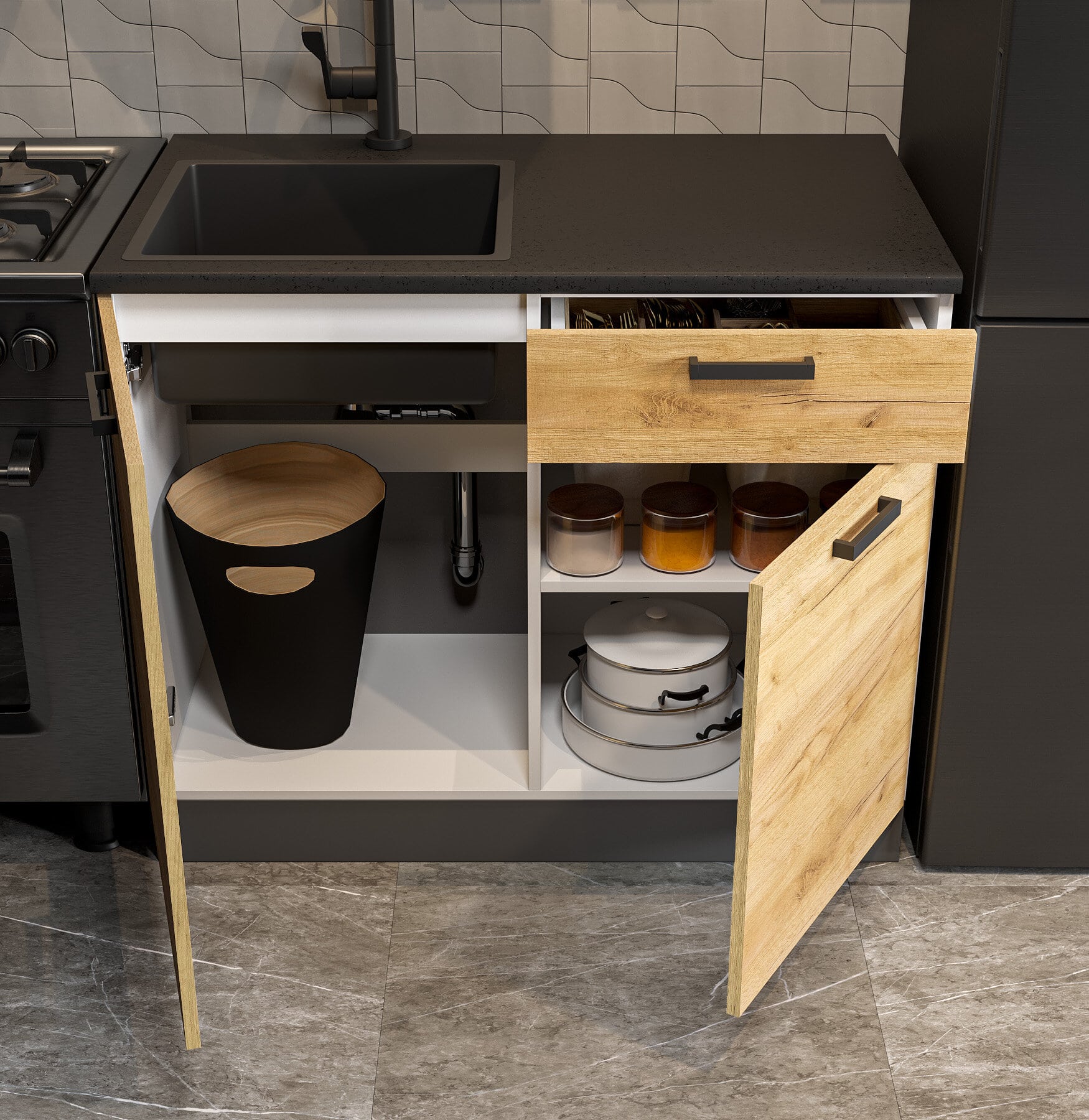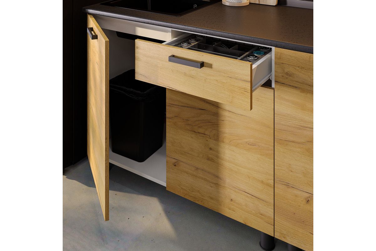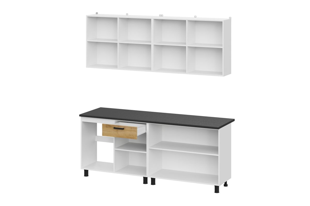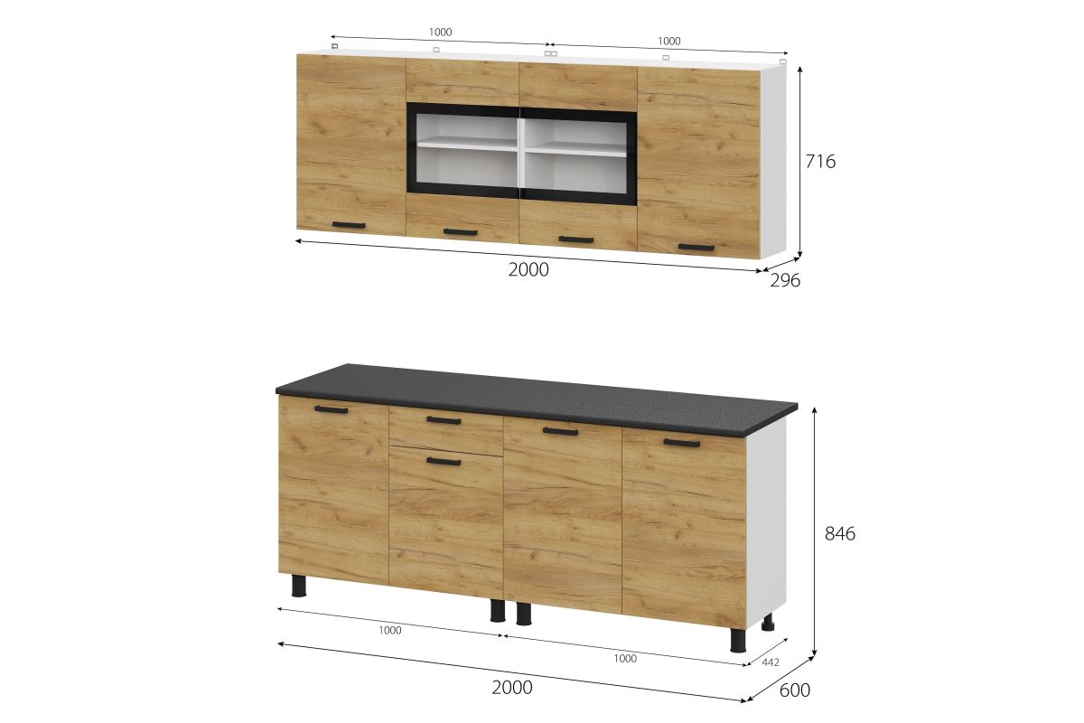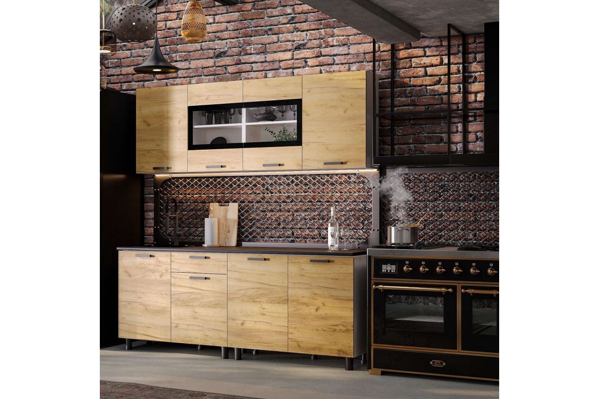Кухня Абрау 2,0 м стильное решение для современной кухни. Идеально впишется в любой современный стиль от скандинавского до лофта . Подойдёт для небольших кухонь, квартир-студий или офиса. Древесная текстура кухни делает эту модель очень уютной. Столешница 2000 мм чёрная матовая входит в комплектацию. Нижняя часть кухни имеет очень функциональное наполнение. -