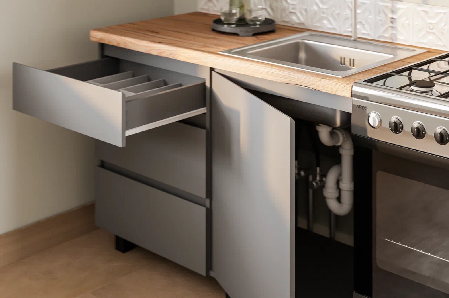 Кухня Асти 1600 в благородном сером цвете стильное решение для современного интерьера. Матовые фасады лёгкие в уходе, не оставляют отпечатки пальцев. Столешница входит в комплектацию. -