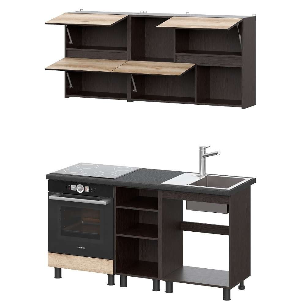 Кухонный гарнитур Берген 1 м - отличный вариант для организации кухонного пространства в модном стиле лофт. Современное сочетание черного венге и текстурного коричневого делано сделает пространство теплым и будет брутально смотреться в интерьере. Кухня Берен наполнена вместительными модулями с выкатными ящиками, распашными фасадами и полочками за ними. Простая и грамотная организация системы хранение на кухне вам обеспечена.